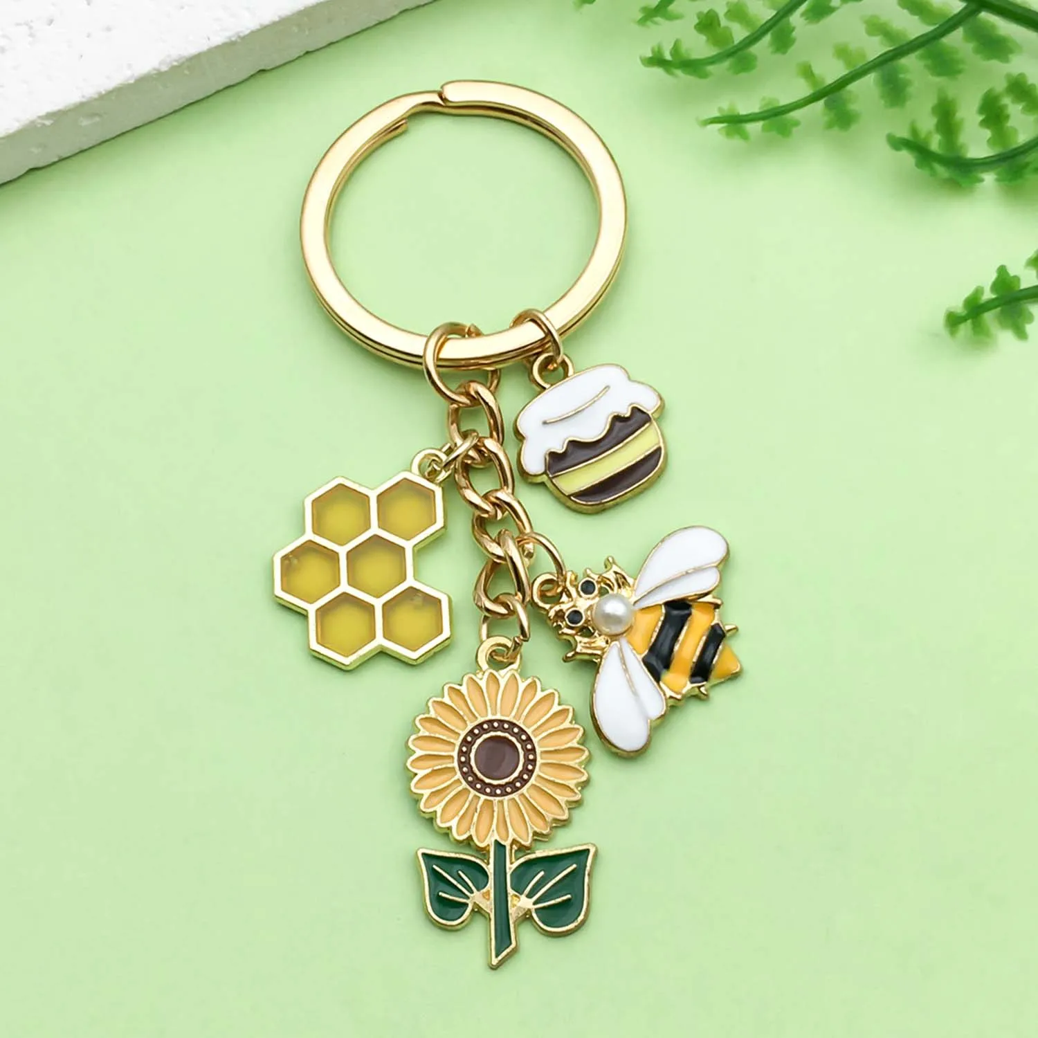 1 قطعة عباد الشمس المينا الموضة ، النحل ، سلسلة المفاتيح العسل ، سبيكة نبات الحشرات حلقة رئيسية لمفاتيح السيارة ، حقائب الظهر ، المحافظ