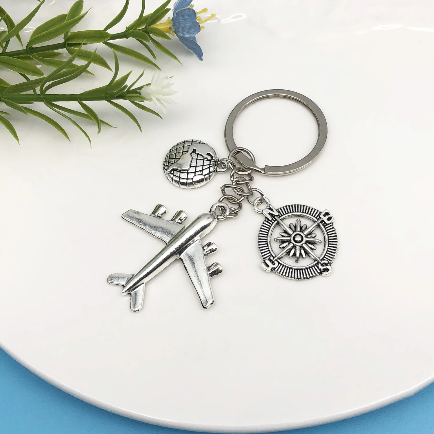1 قطعة سلسلة المفاتيح رحلة المينا طائرة الأرض مفتاح سلسلة الاتجاه قلادة اليدوية خاتم مفتاح  هدية الحرية للمسافر
