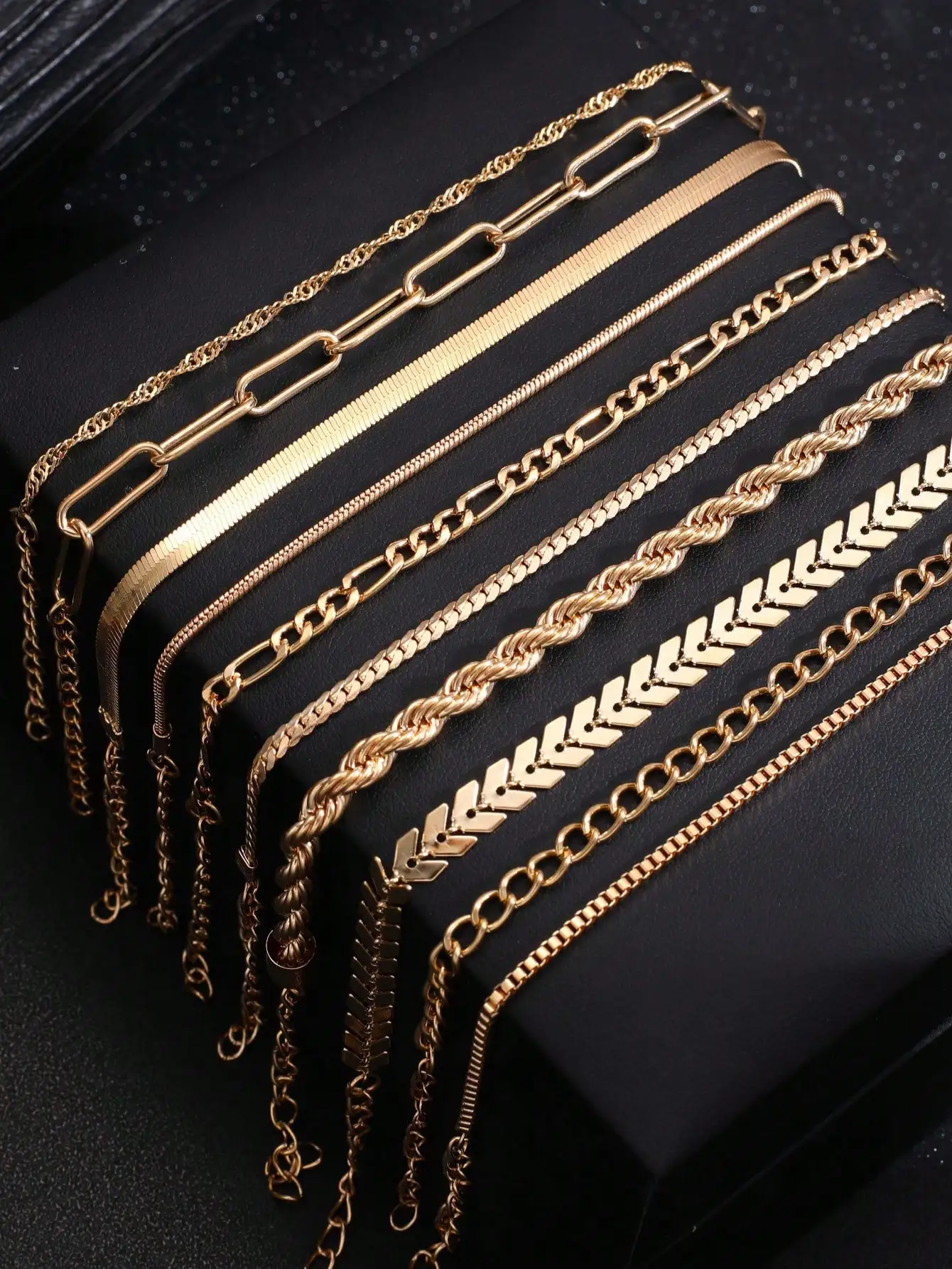 10 قطع من مجموعة أساور سلسلة ذهبية عادية للسيدات بتصميم كاجوال عتيق، مناسبة للارتداء اليومي للنساء، يمكن طبقاتها، مثالية لهدايا العطلات ومتعددة الاستخدامات لجميع المواسم