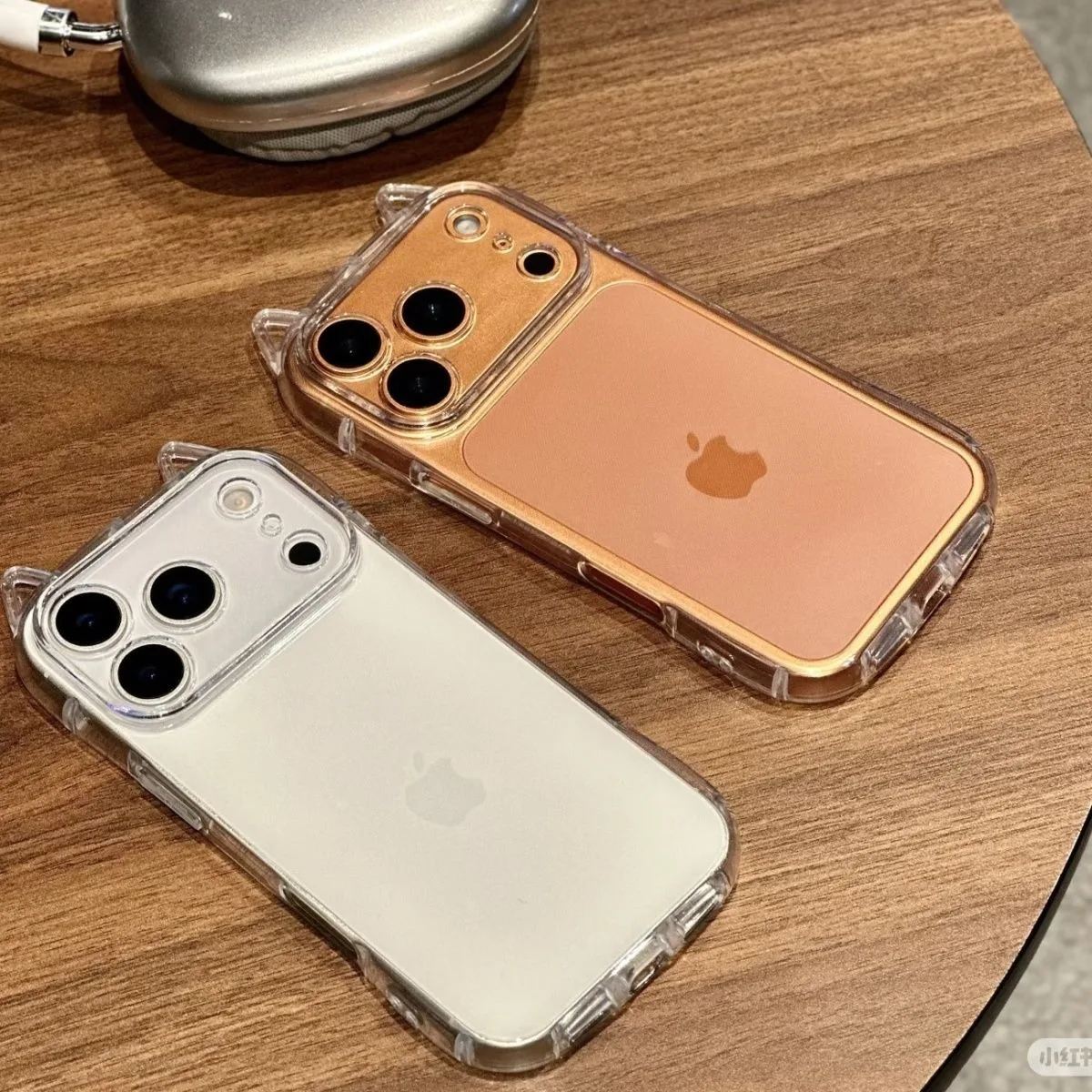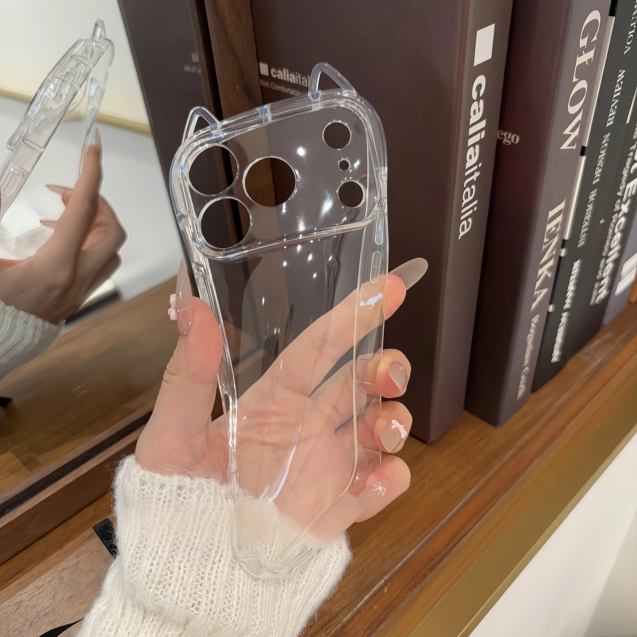 17 ProMax ثلاثية الأبعاد لطيف آذان القط واضح جراب هاتف آيفون 11 12 13 14 15 16 برو ماكس زائد 17Air Xs X سليم لينة غطاء مقاوم للصدمات من البولي يوريثان