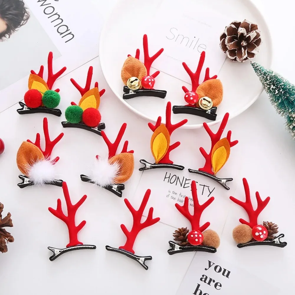 2 قطعة عيد الميلاد قرن الوعل مقاطع الشعر المعلقات عيد الميلاد الحلي عيد ميلاد سعيد زينة عيد الميلاد لفتاة الرنة إكسسوارات الشعر سنة جديدة سعيدة