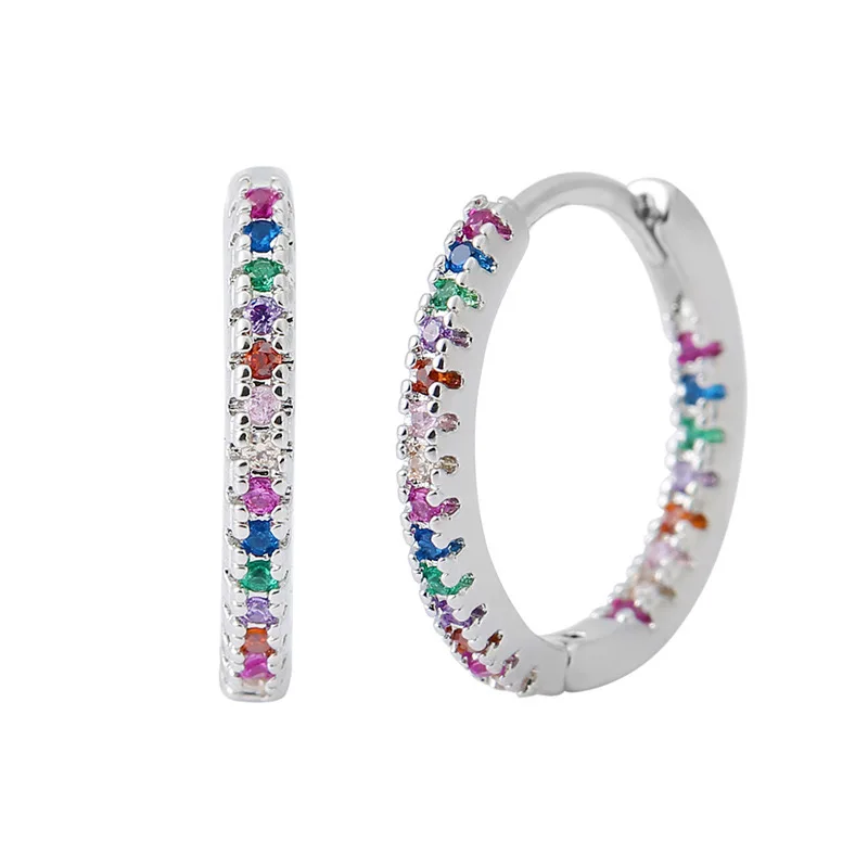2 قطعة قوس قزح كبير Huggie الأطواق أقراط للنساء الفولاذ المقاوم للصدأ الغضروف داينتي الوجهين زركونيا أقراط للأذن مجوهرات