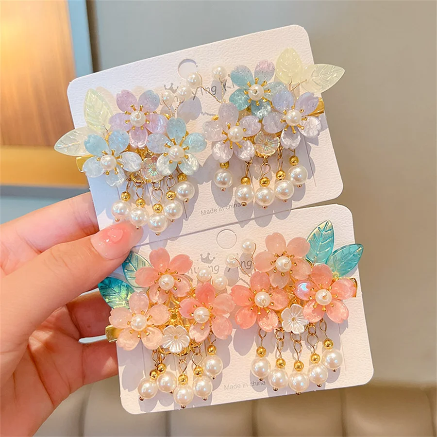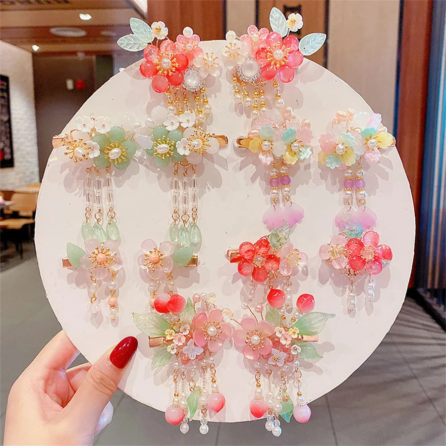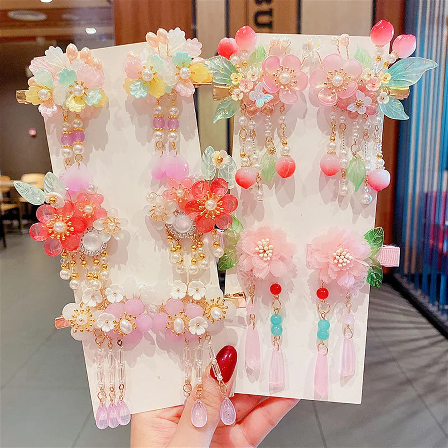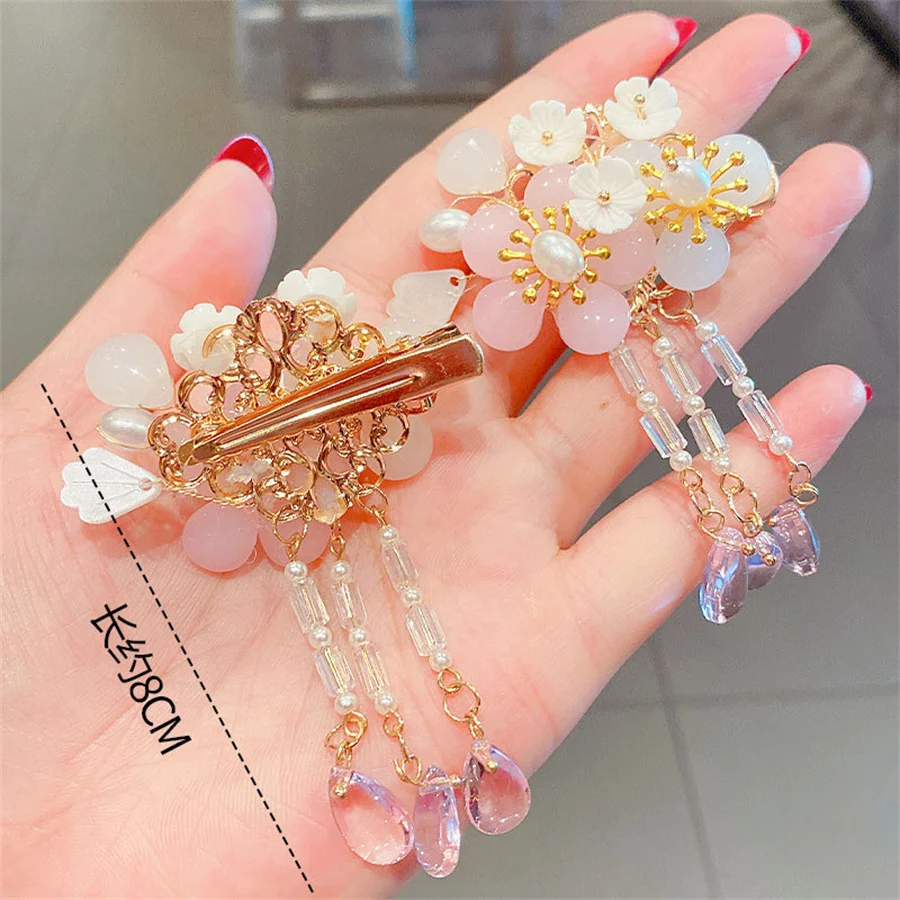 2 قطعة/المجموعة جديد الكورية Hanfu أنيقة فراشة دبوس الشعر الزهور المعادن شرابة طويلة hairgrip اكسسوارات للشعر الطرف كومبو مشبك شعر