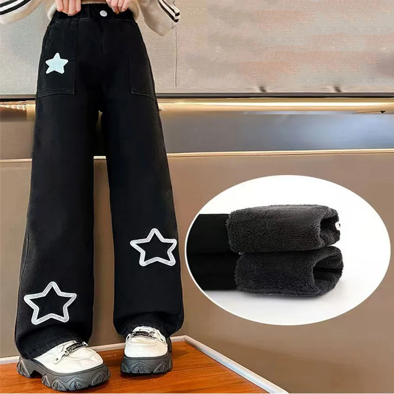 -20 ° الفتيات رشاقته بناطيل تدفئة المراهقين زائد المخملية الشتاء السراويل الأطفال مبطن امبسوول بنطال ذو قصة أرجل واسعة الاطفال ملابس جديدة