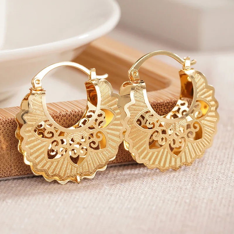 أقراط بتصميم مجوف أوروبي وأمريكي جديد، إكسسوارات مجوهرات على شكل زهرة أنيقة للسيدات على الطراز العرقي