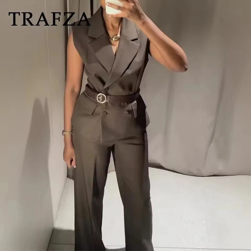 2025 جديد النساء السراويل Fashiontwo-قطعة مجموعة المرأة مثير الخامس الرقبة مع حزام أعلى + السراويل واسعة الساق 2 قطعة مجموعات بدلة نسائية أنيقة