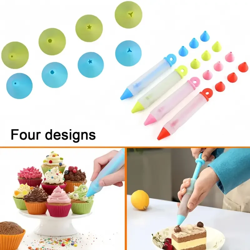 4 قطع من أدوات تزيين الكيك من السيليكون لكتابة الطعام، أدوات تزيين كريم الشوكولاتة مع 4 رؤوس فوهات معجنات أنابيب الصقيع