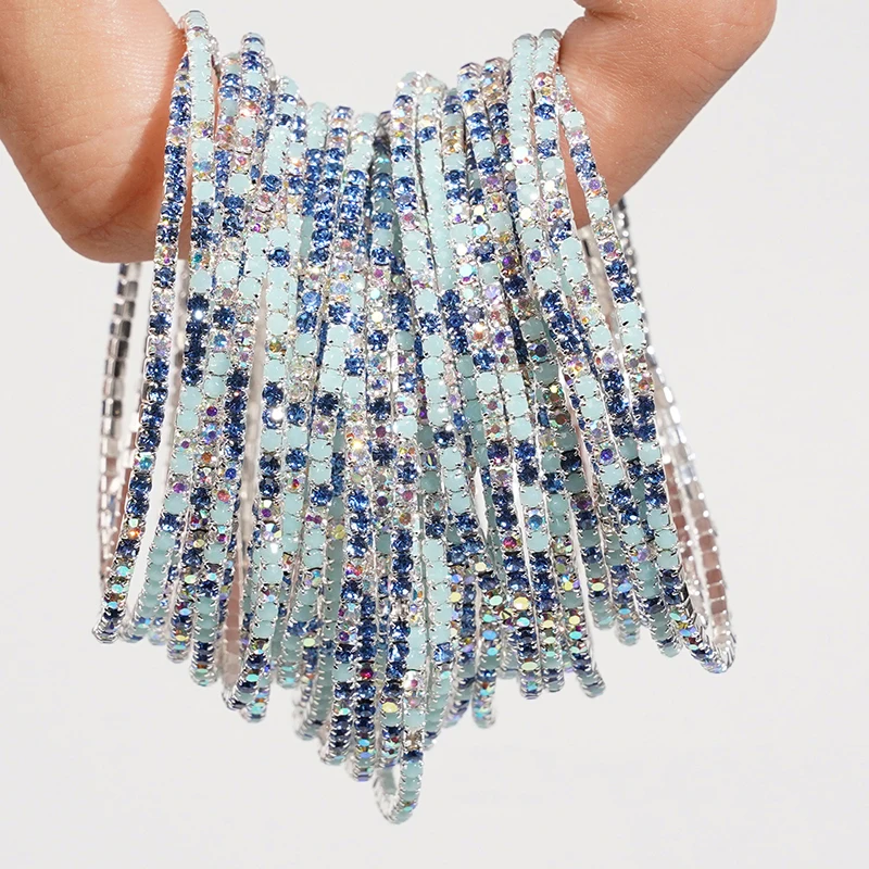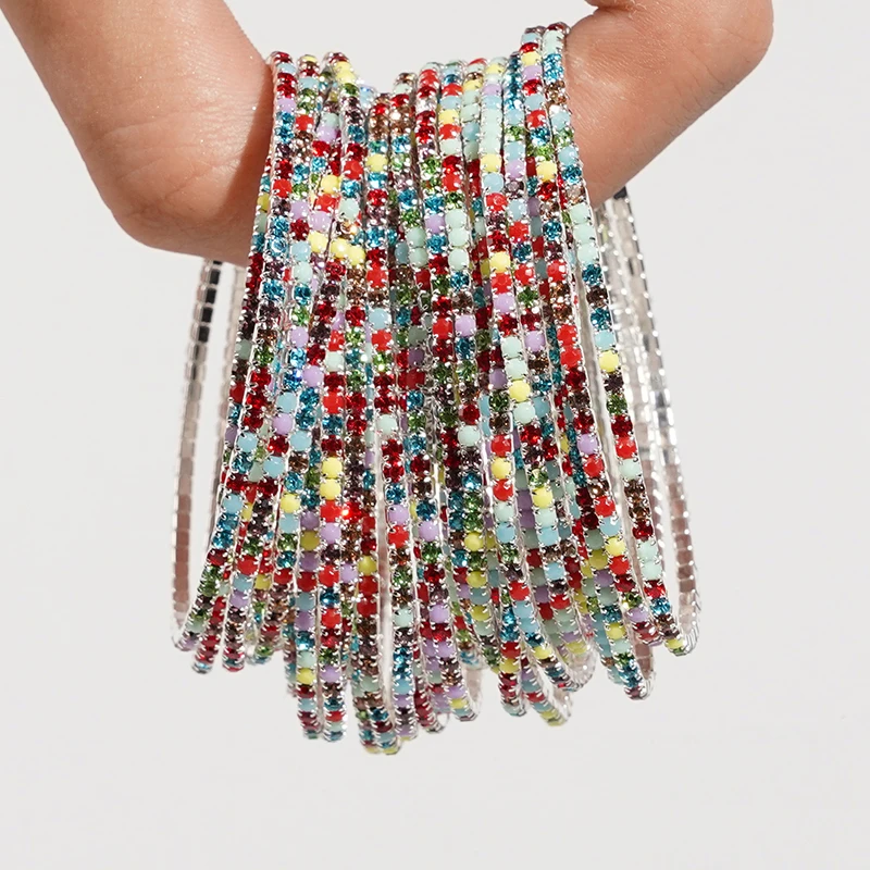 5 قطع الأزياء الملونة الاكريليك كريستال حجر الراين مطاطا سوار للنساء تمتد معصمه أساور الزفاف المجوهرات اليومية