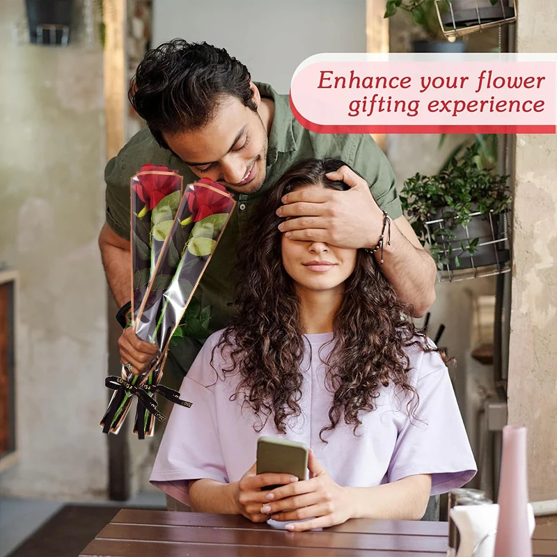 50 قطعة من أكياس تغليف الزهور الشفافة لتزيين هدايا باقة الزهور الوردية لعيد الحب وحفلات الزفاف وأعياد الميلاد