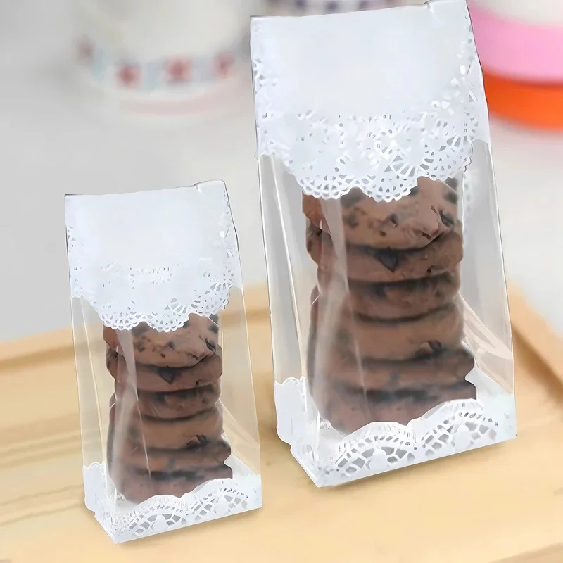 50 قطعة/الوحدة الدانتيل الأبيض كوكي البسكويت حقيبة الزفاف هدية الحلوى كب كيك يدوية الصنع DIY عيد الميلاد أكياس التعبئة والتغليف البلاستيكية