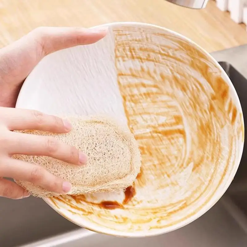 6 قطعة منشفة أطباق لوفا الطبيعية غسل القماش الإسفنج اللوف فرك الوسادة طبق وعاء النفط إزالة البقع الغسيل المطبخ نظيفة BrushesPad