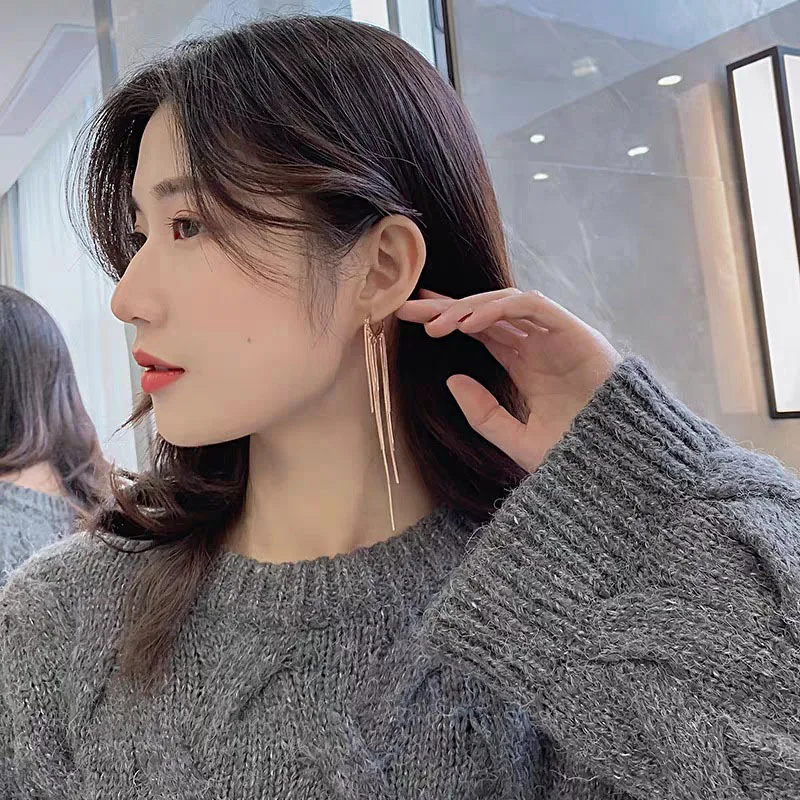 925 الفضة إبرة الكورية موضة سلسلة طويلة شرابة أقراط للنساء القرط المعدني مجوهرات تتجه المرأة انخفاض الأقراط