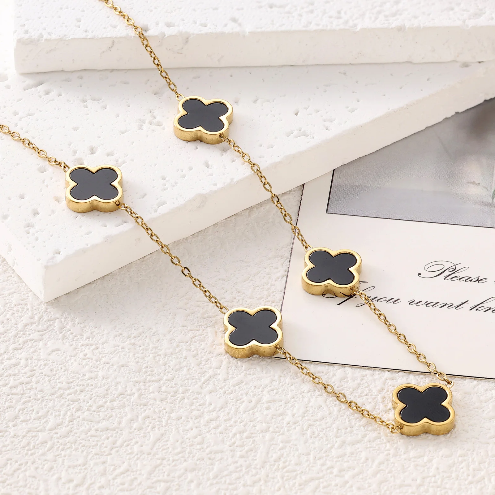 عصرية وأنيقة فاخرة الفولاذ المقاوم للصدأ أربع أوراق البرسيم قلادة وسوار مجموعة مجوهرات، قلادة زهرة مصقولة