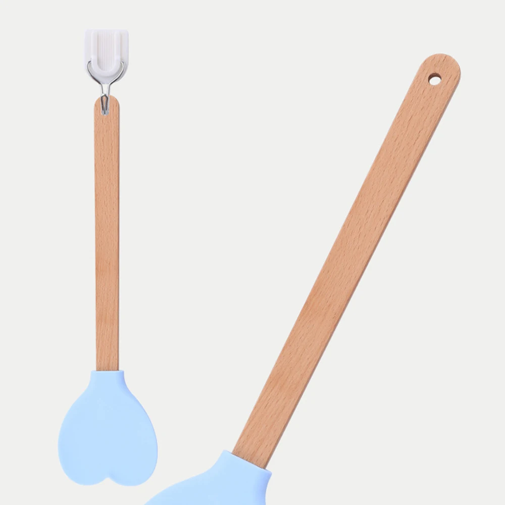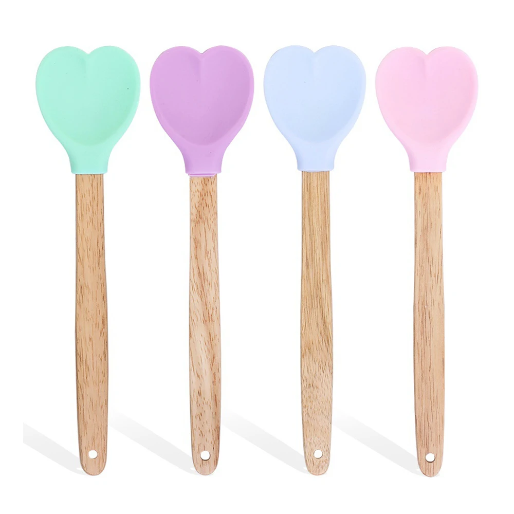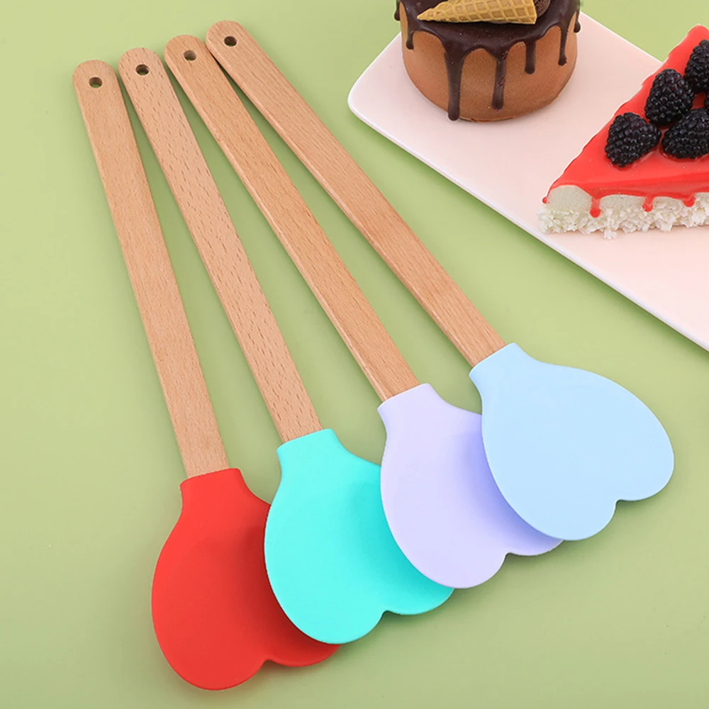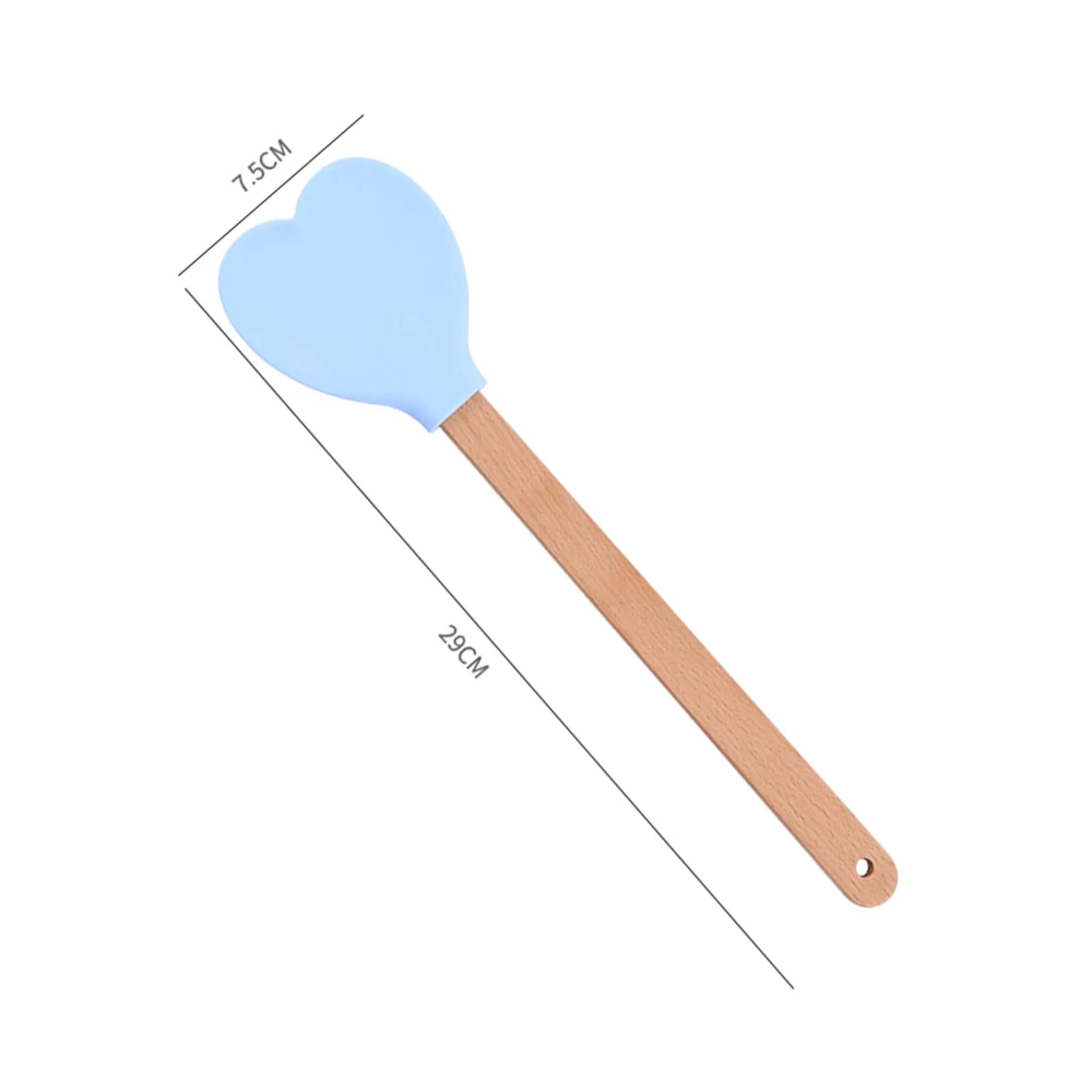 عيد الحب الوردي الحب ملعقة سيليكون على شكل قلب مقبض خشبي ملاعق الخبز أواني المطبخ صنع كعكة الخبز أداة