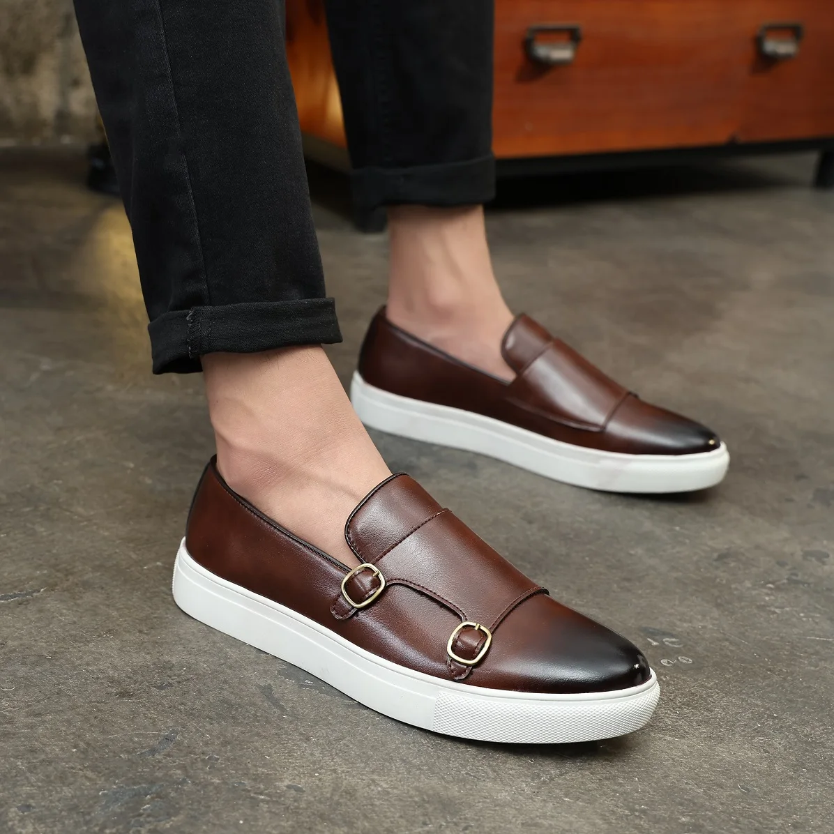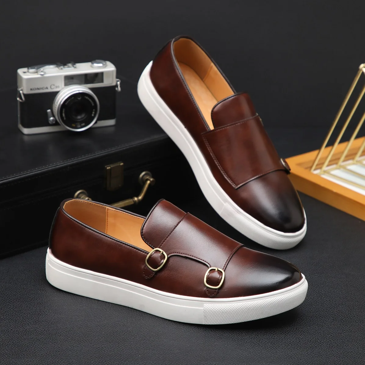 أحذية جلدية كاجوال للرجال ، أحذية بلا كعب على الطراز البريطاني الكلاسيكي ، شقق خارجية سهلة الارتداد ، حذاء قيادة ، موضة