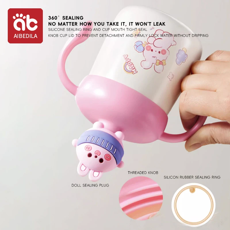 AIBEDILA أكواب مياه للأطفال معزولة من الفولاذ المقاوم للصدأ زجاجة مياه من القش كوب تعلم الطفل للشرب بمقبض مزدوج مانع للتسرب