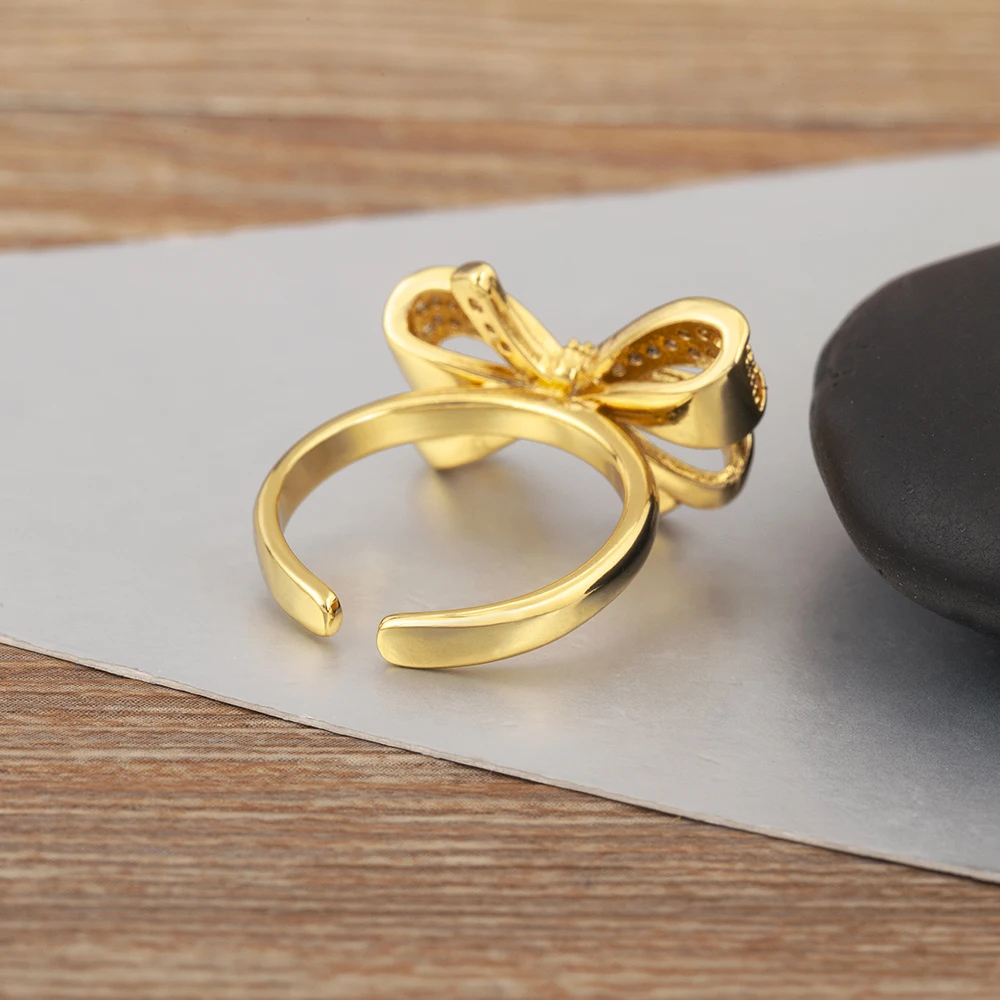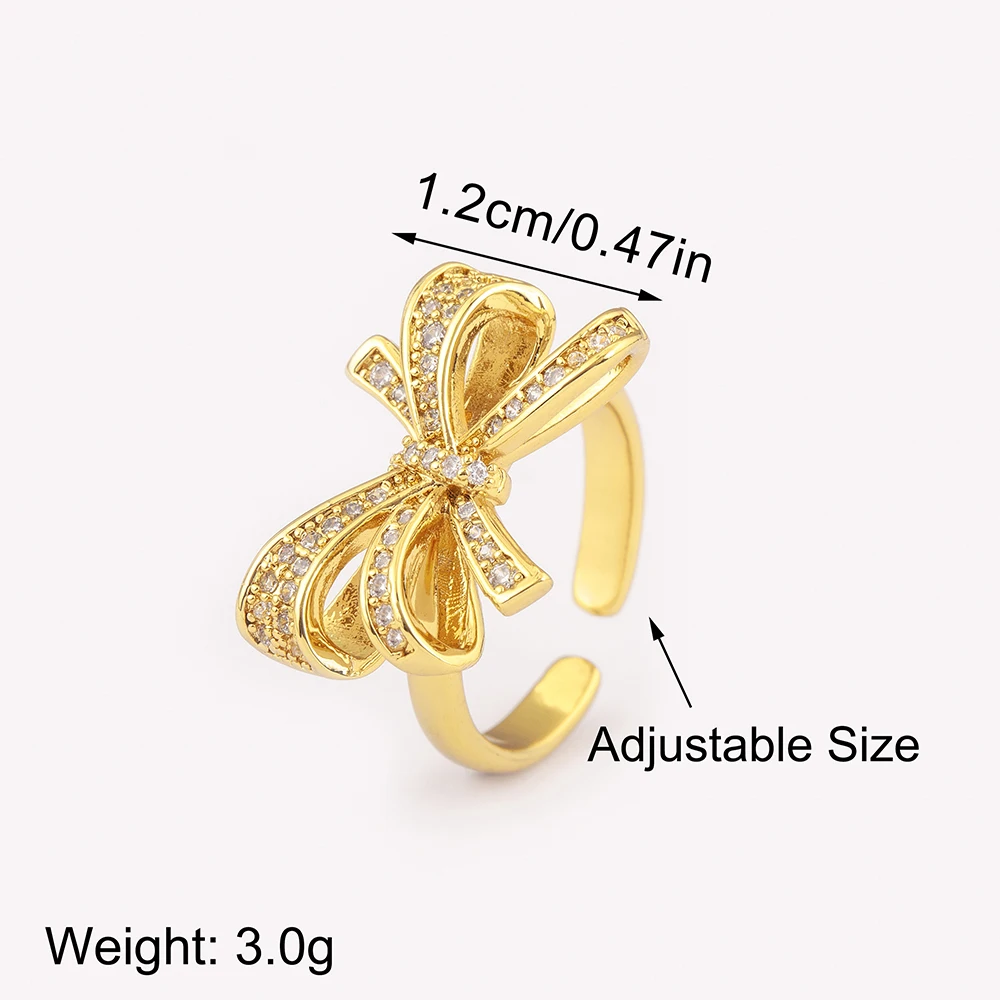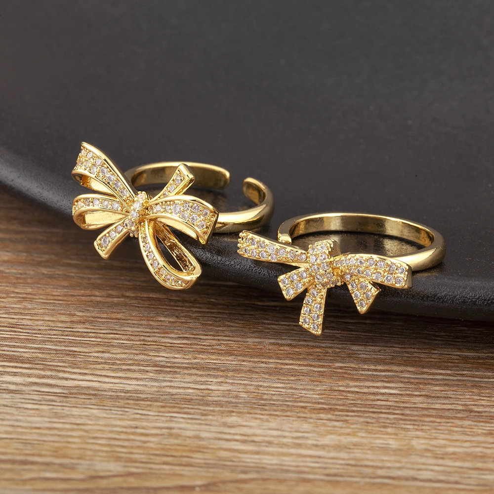 AIBEF لطيف أنيق 5 نمط القوس شكل قابل للتعديل افتتاح خواتم النساء النحاس الزركون مجوهرات مزاجه الحلو الإكسسوار فتاة هدية