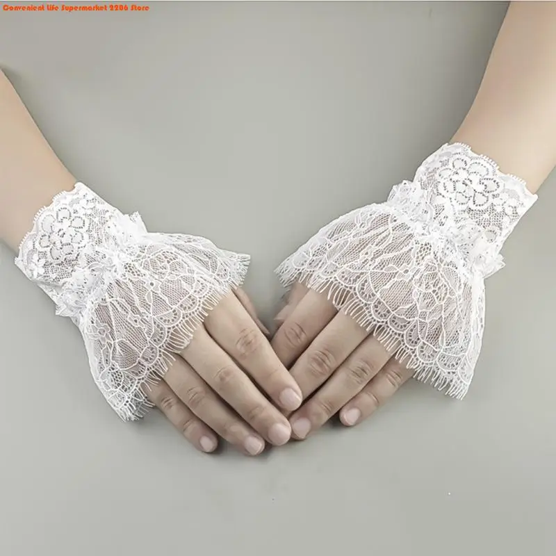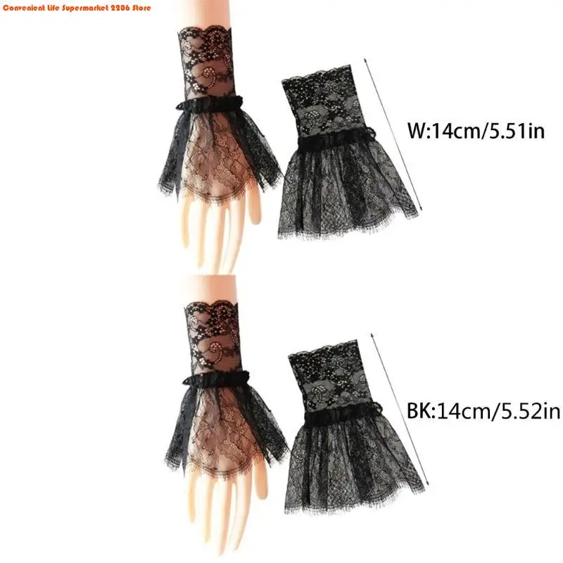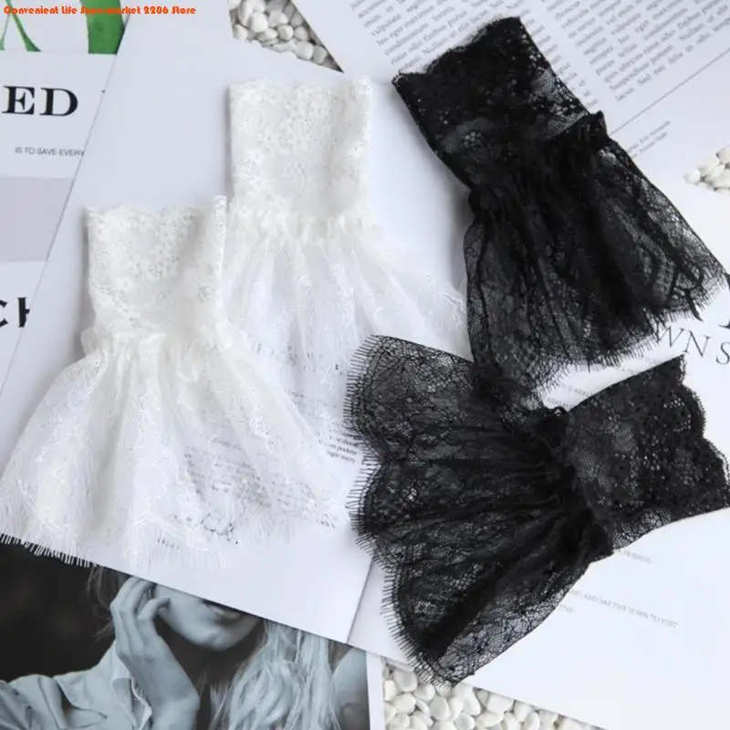 أكمام أذرع مزيفة للنساء مع شرابات قصيرة باللونين الأبيض والأسود، إكسسوارات جميلة من الدانتيل، زينة خارجية