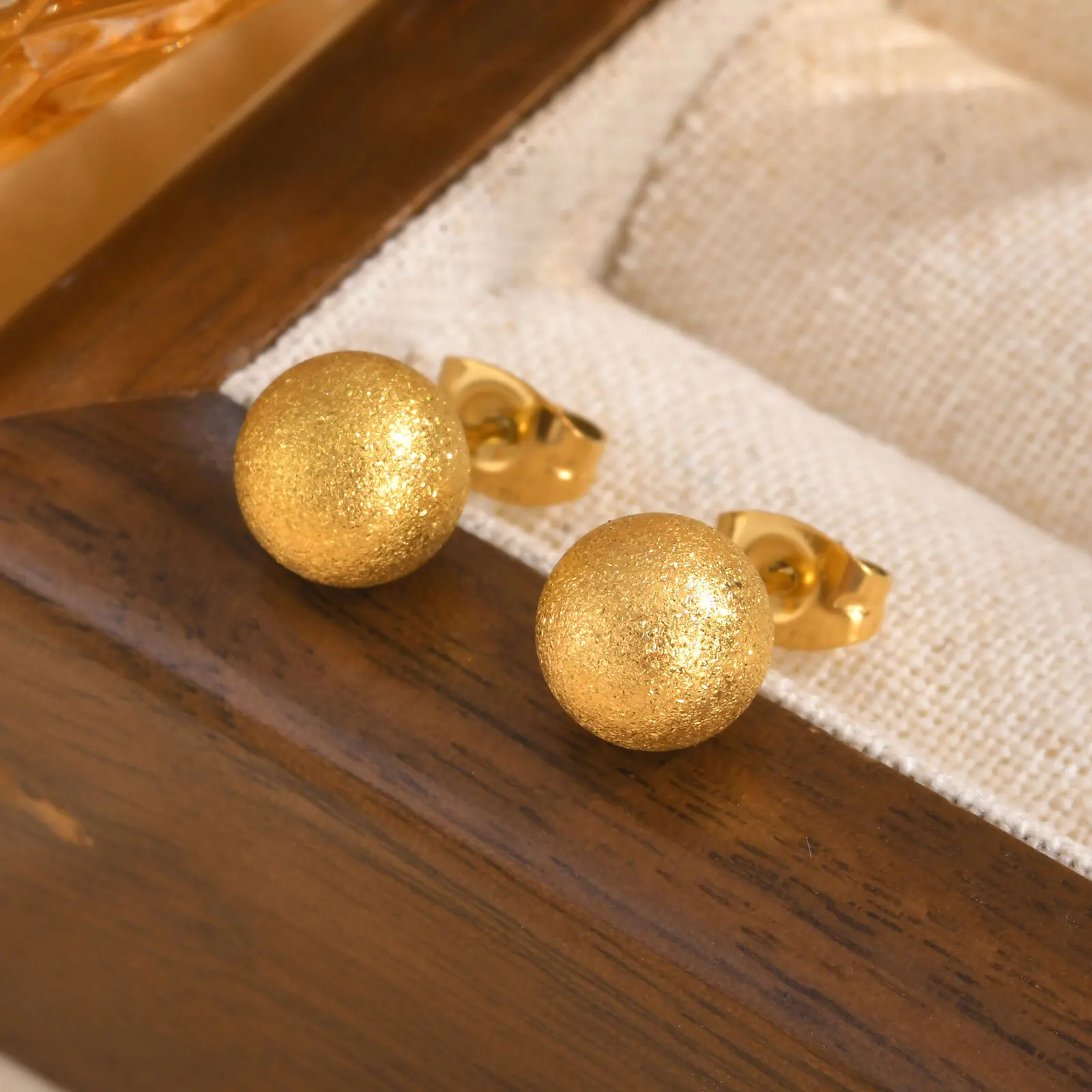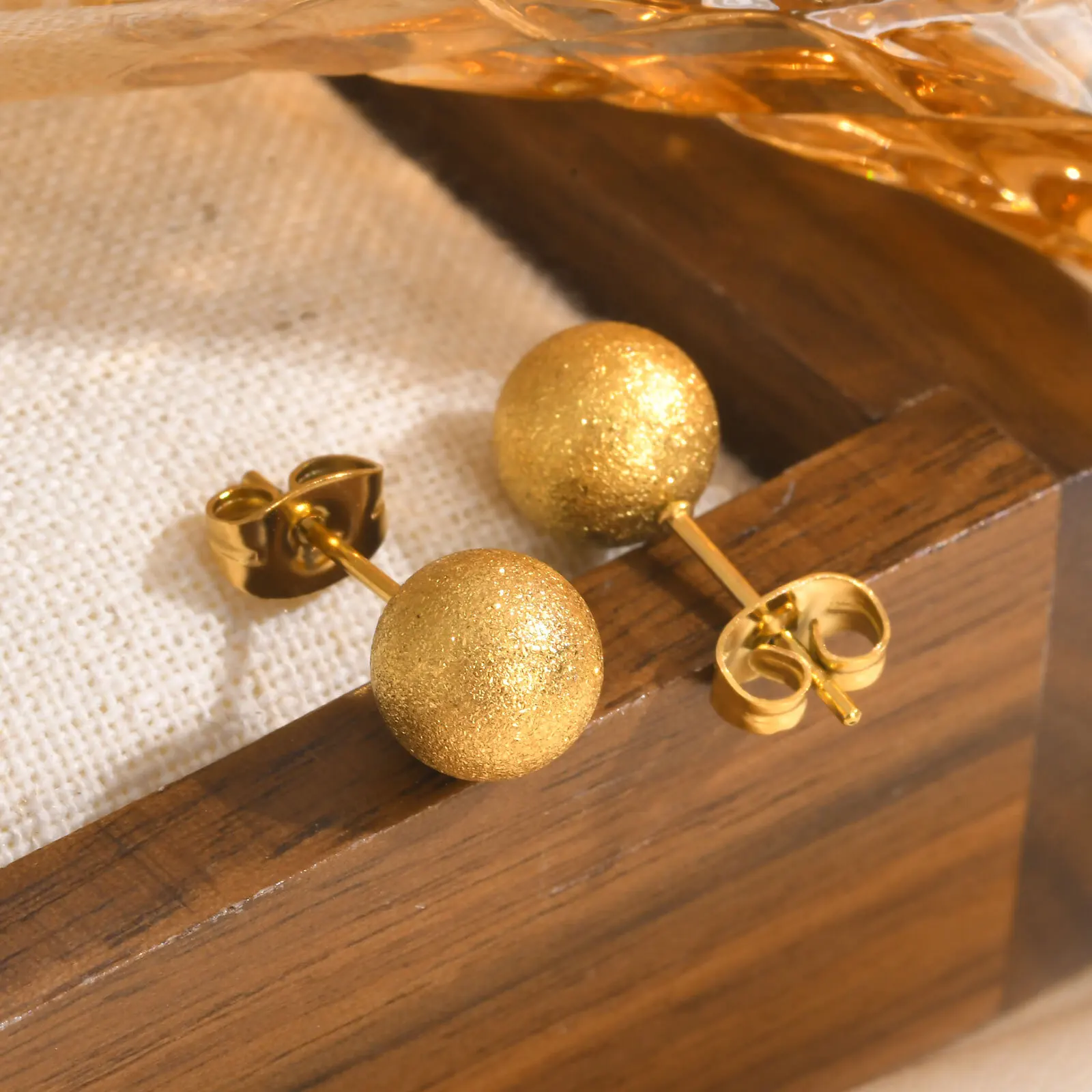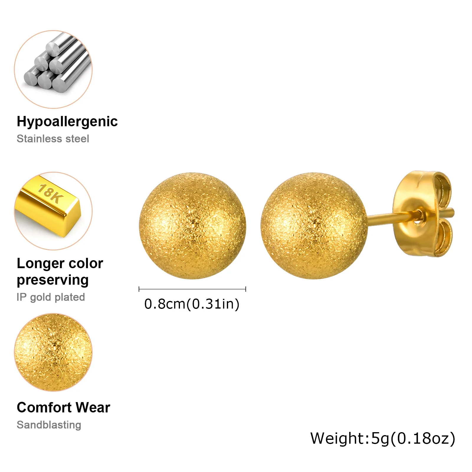 أقراط كروية كلاسيكية مقاس 8 مم للنساء، مجوهرات أذن مطلية بالذهب عيار 18 قيراط من الفولاذ المقاوم للصدأ ومضادة للحساسية