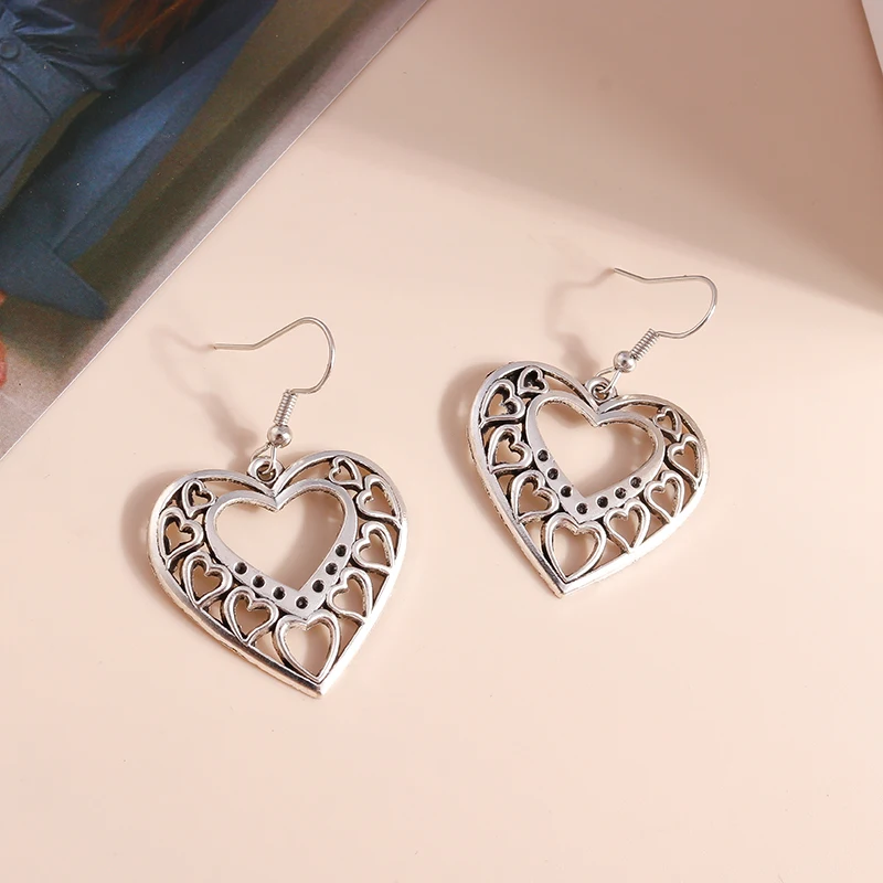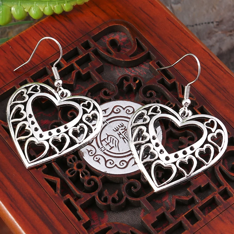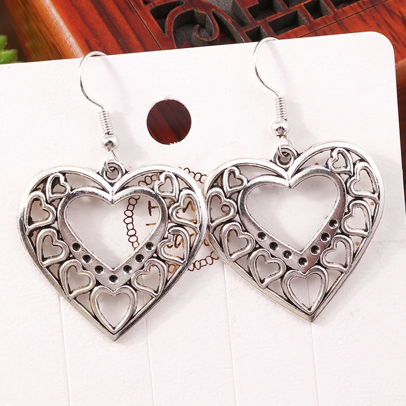 أقراط متدلية على شكل قلب من سبيكة عرقية للنساء والفتيات وهدايا مجوهرات للحفلات والعطلات