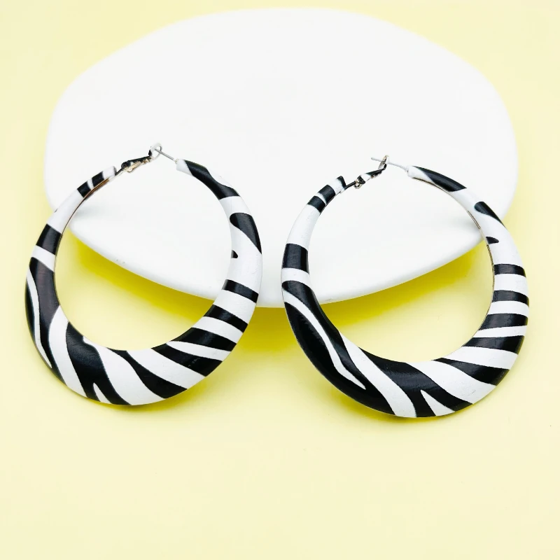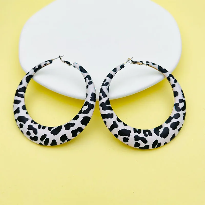 أقراط طارة مبالغ فيها للنساء ، طباعة فهد هندسية ، هدية حفلات ، مجوهرات عصرية للعطلات ، إكسسوارات أذن ، DE079