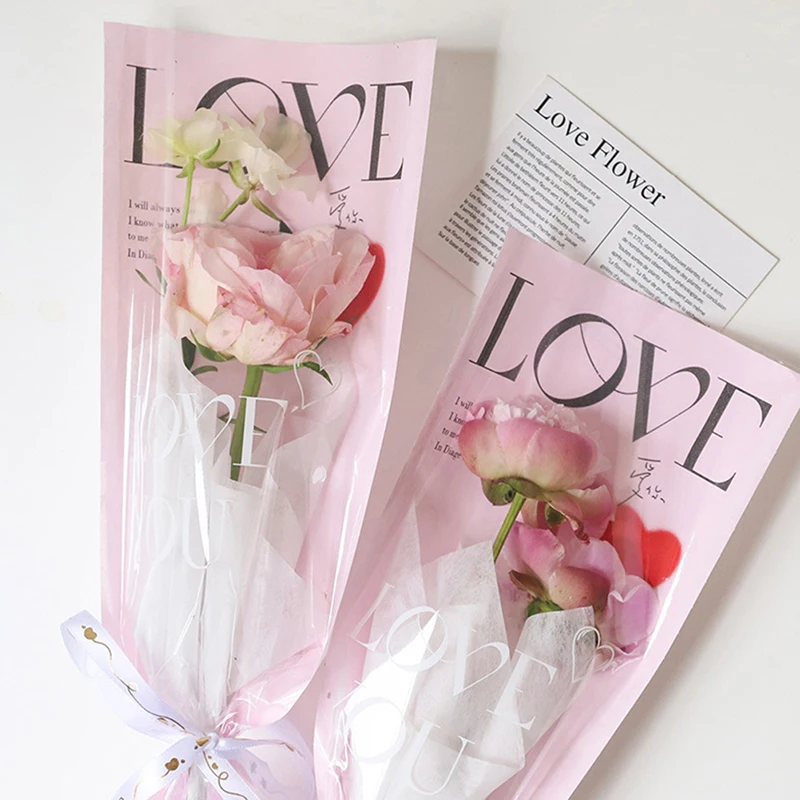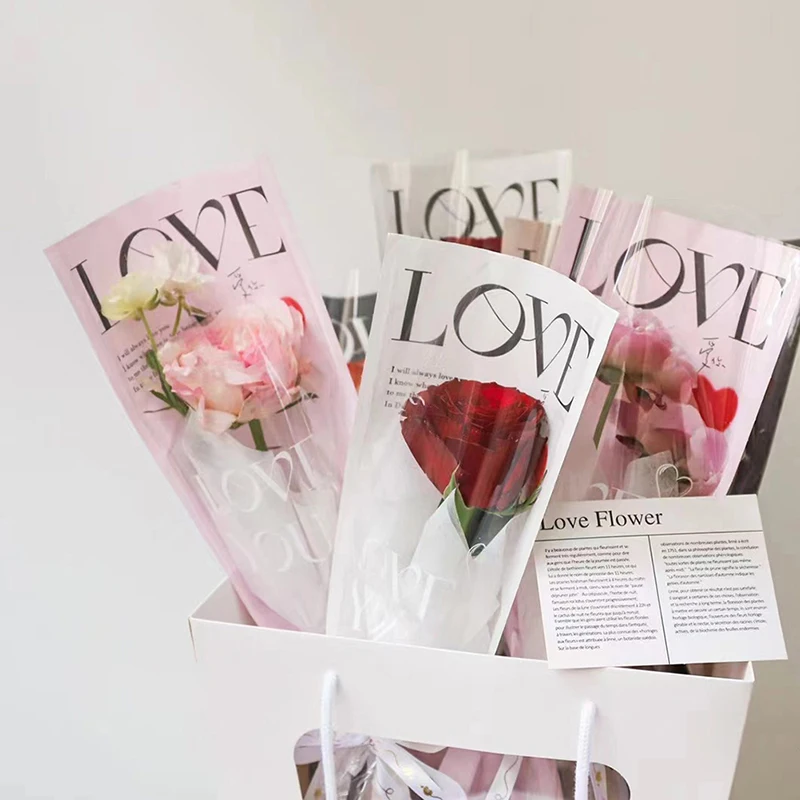 أكياس تعبئة ورد شفافة من Love ، كيس بلاستيك لباقة الزهور ، ورق تغليف ، كيس واحد مستقيم ، 20 *