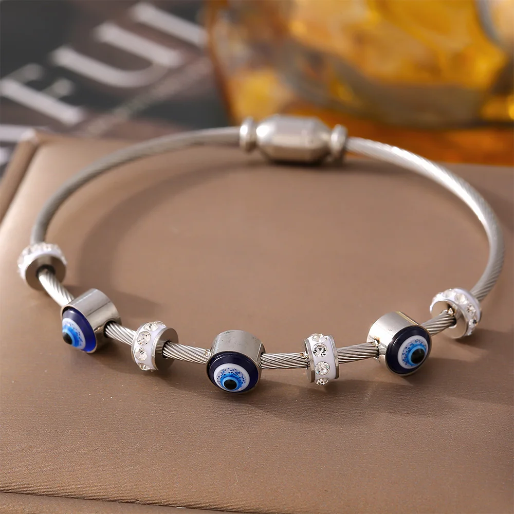 أساور للنساء الفولاذ المقاوم للصدأ مطلية بالذهب حجر الراين المينا المرأة سحر الإسورة مجوهرات مقاومة للماء