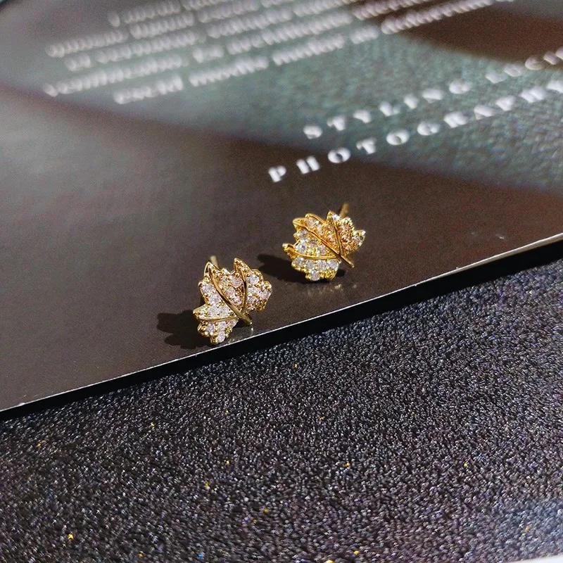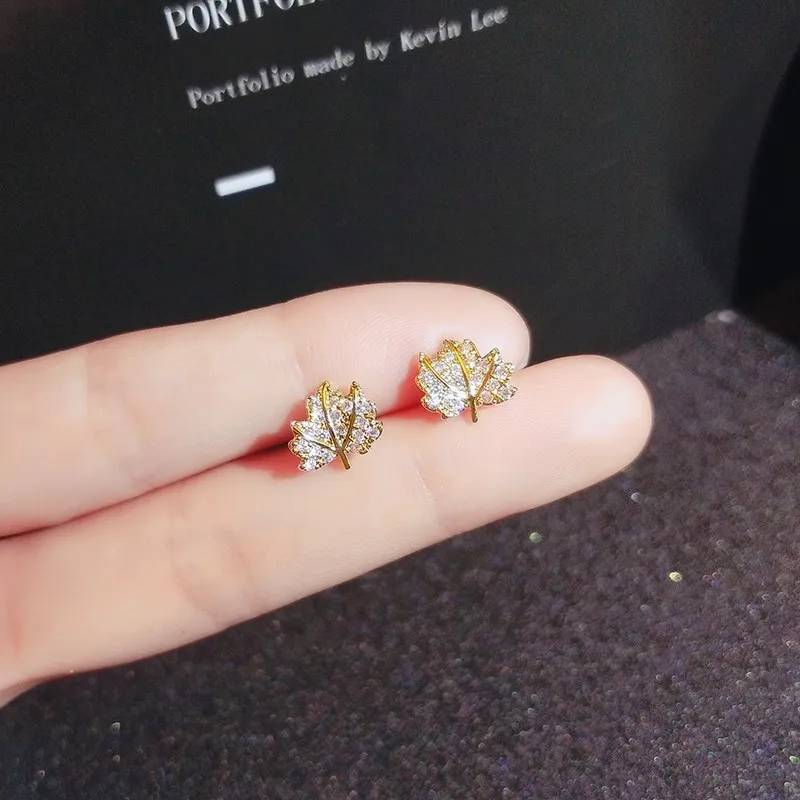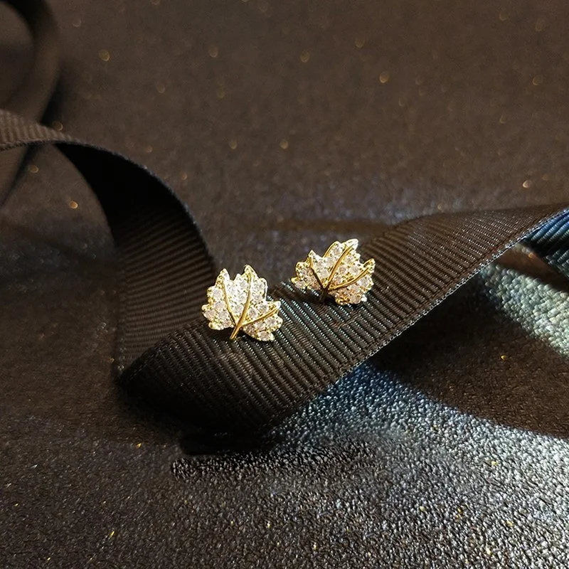 الإبداعية الأحمر مابل ليف الزركون وأقراط للنساء لطيف الحيوان أرنب القط حجر الراين القرط بنات مجوهرات حفلة عيد الميلاد