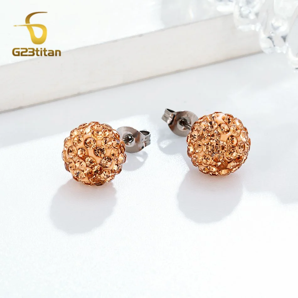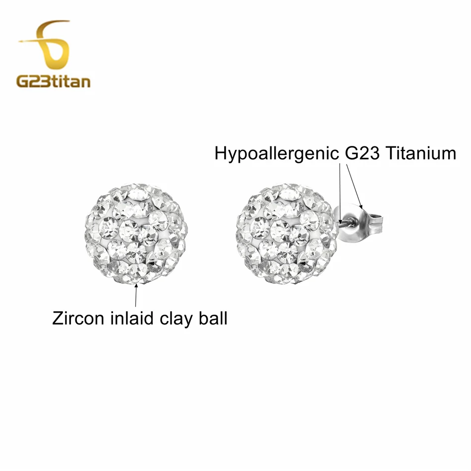 الألوان كريستال حبة بوليمر كلاي أقراط G23 التيتانيوم الأذن مربط مايكرو تمهيد حجر الراين الكرة هيبوالرجينيك ثقب المجوهرات
