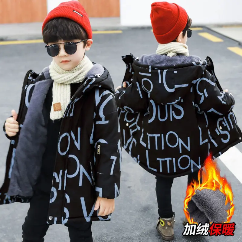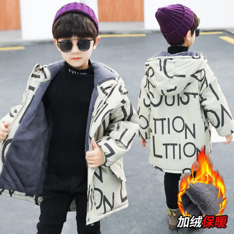 الأولاد معطف سترة معطف القطن الفاخرة الدافئة رشاقته المخملية الشتاء الرياضية Teenager حجم كبير الاطفال ملابس الأطفال
