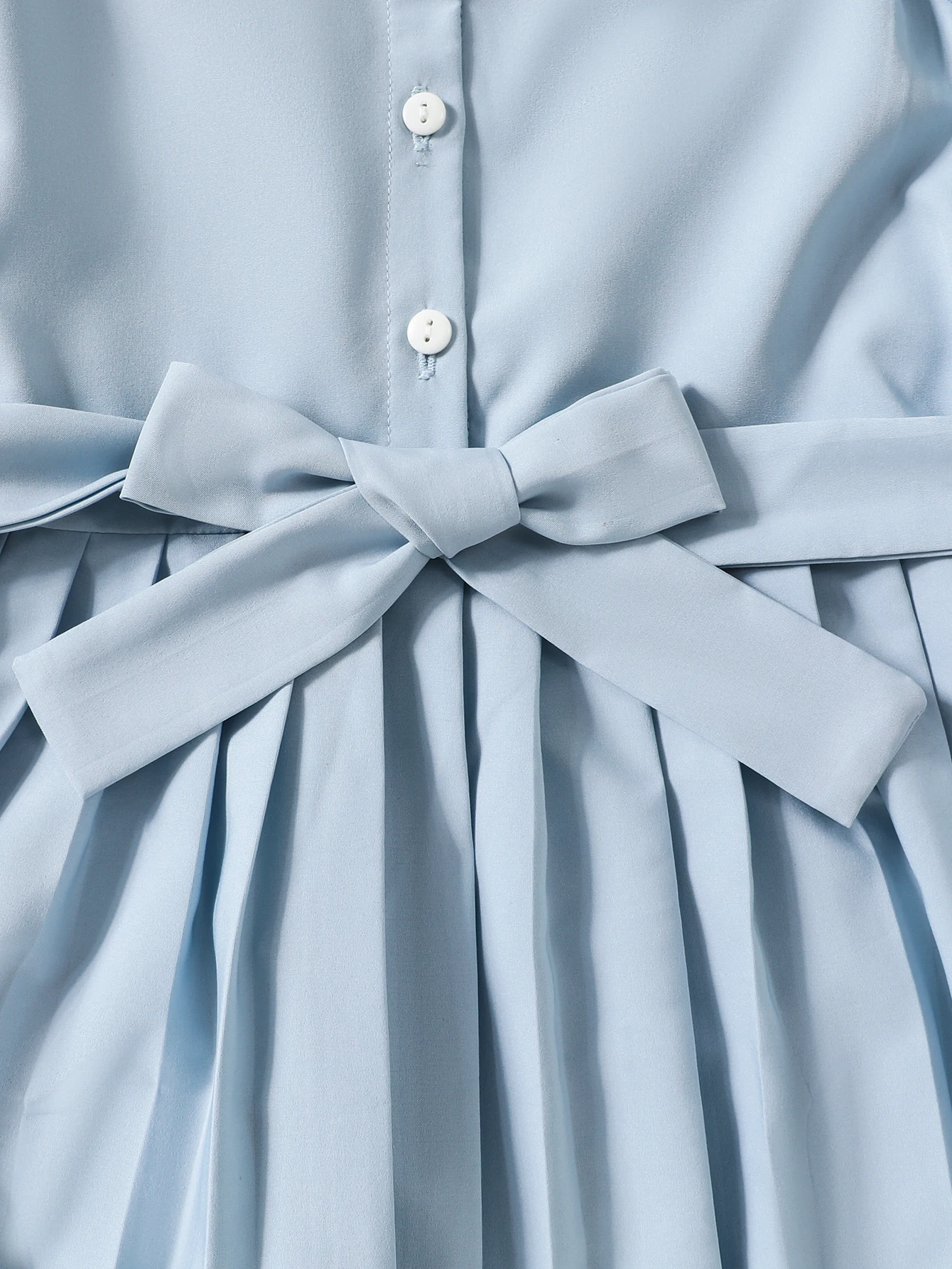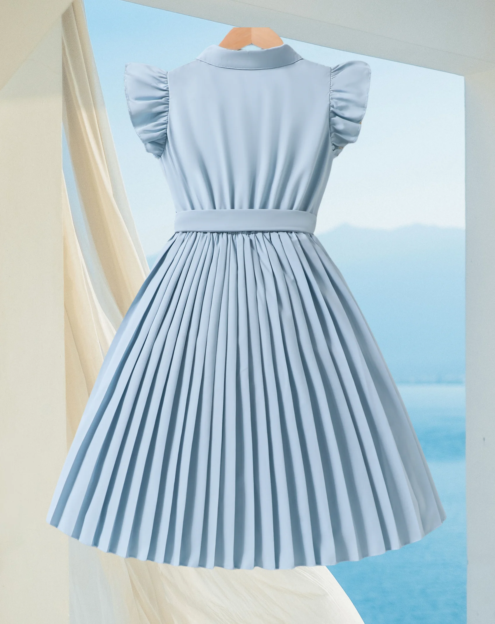 الفتيات الصيف لطيف أنيق طية صدر السترة الصدر قميص فرنسي نمط تنورة مطوية فستان أزرق بسيط