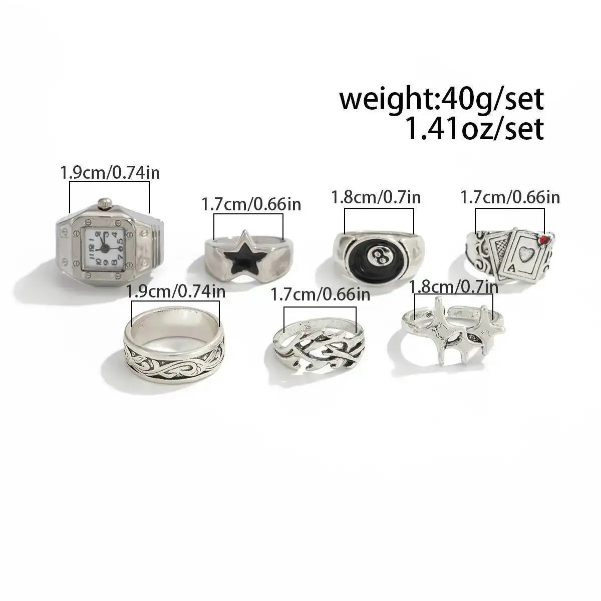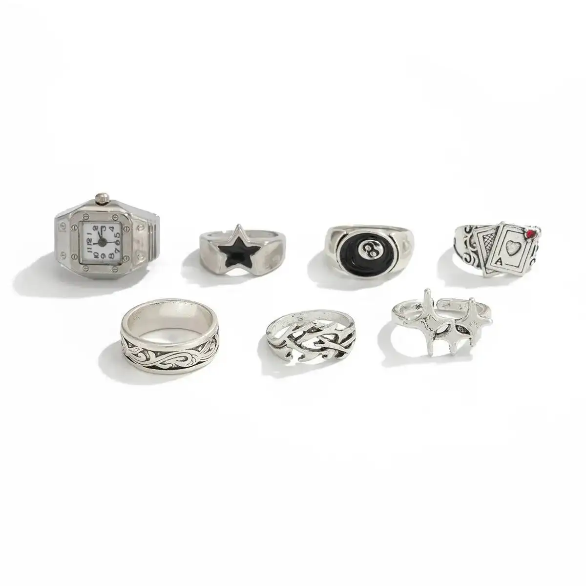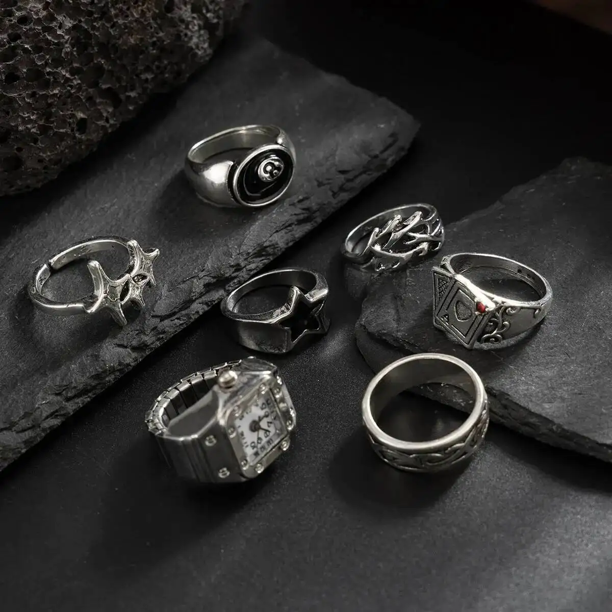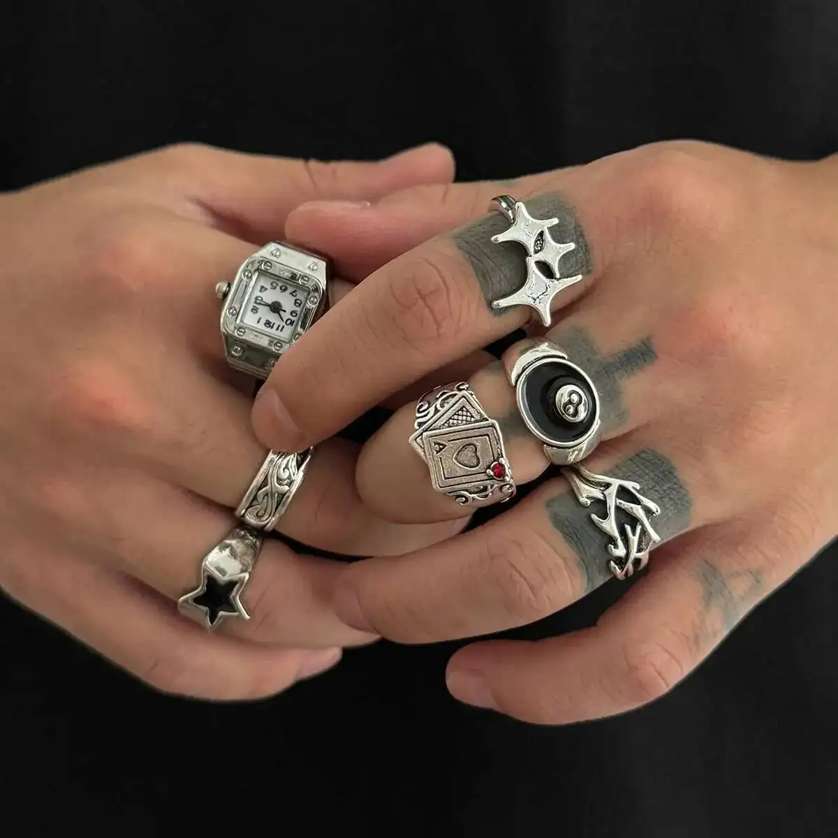 الهيب هوب الإبداعية الفضة اللون الخماسي خواتم الاصبع الرجال غير النظامية كومة حلقة الاتجاه مجوهرات الإكسسوار