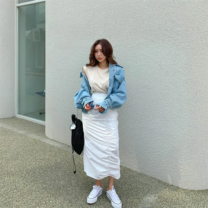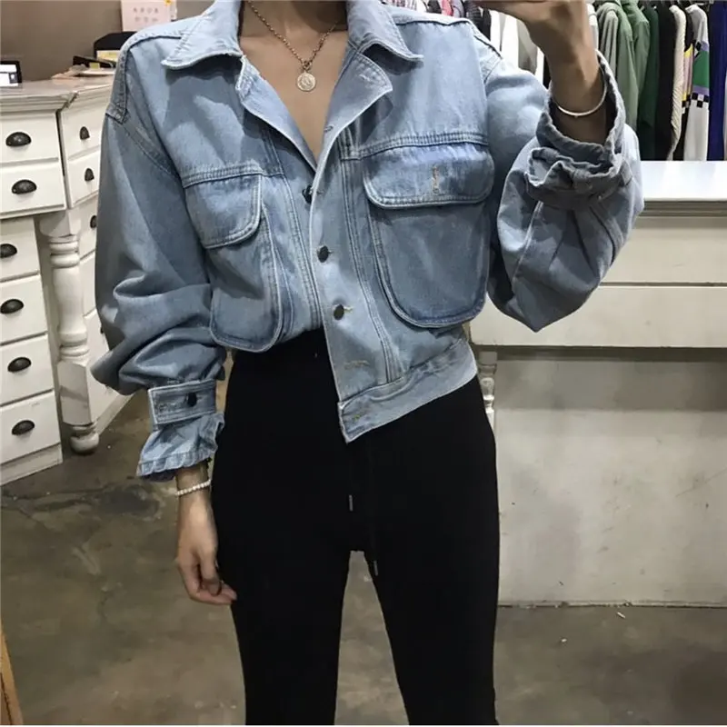 الخريف الطلاب شيك الدينيم عادية Feminine BF نمط موجز كاوبوي مكتب سيدة كل مباراة الطازجة فضفاض معطف كبير الحجم القمم