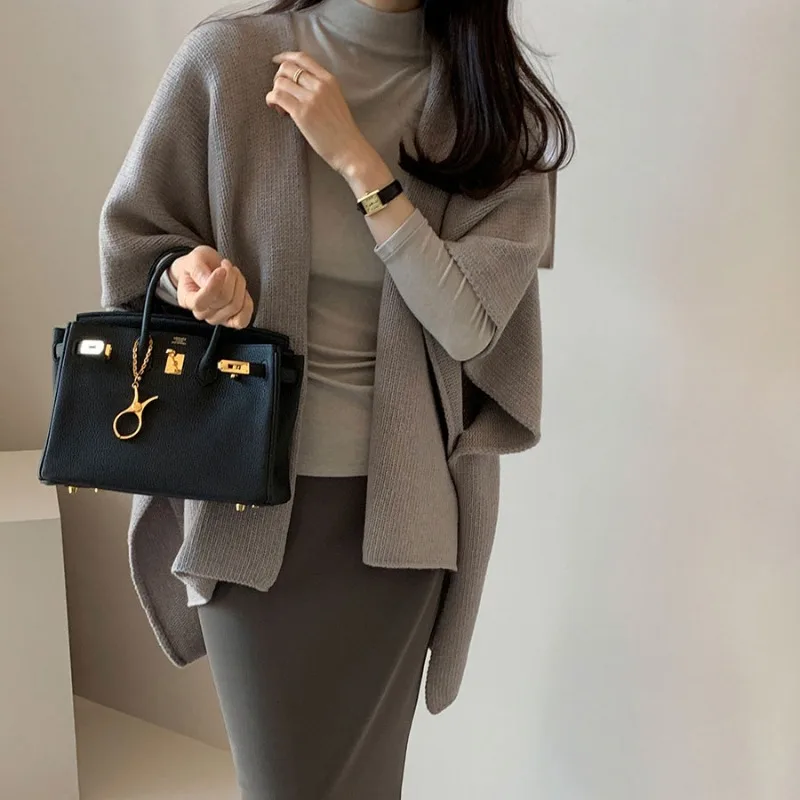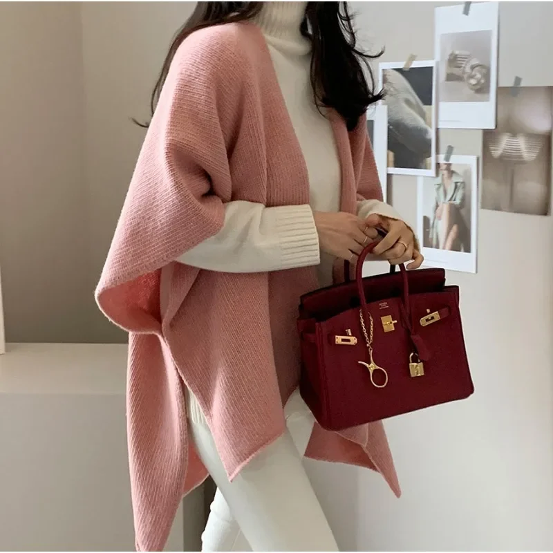 الكورية نمط شال محبوك سترة المرأة عادية الدافئة سترة مشغولة من الصوف عباءة أنيقة بلون المرأة سترة مشغولة من الصوف