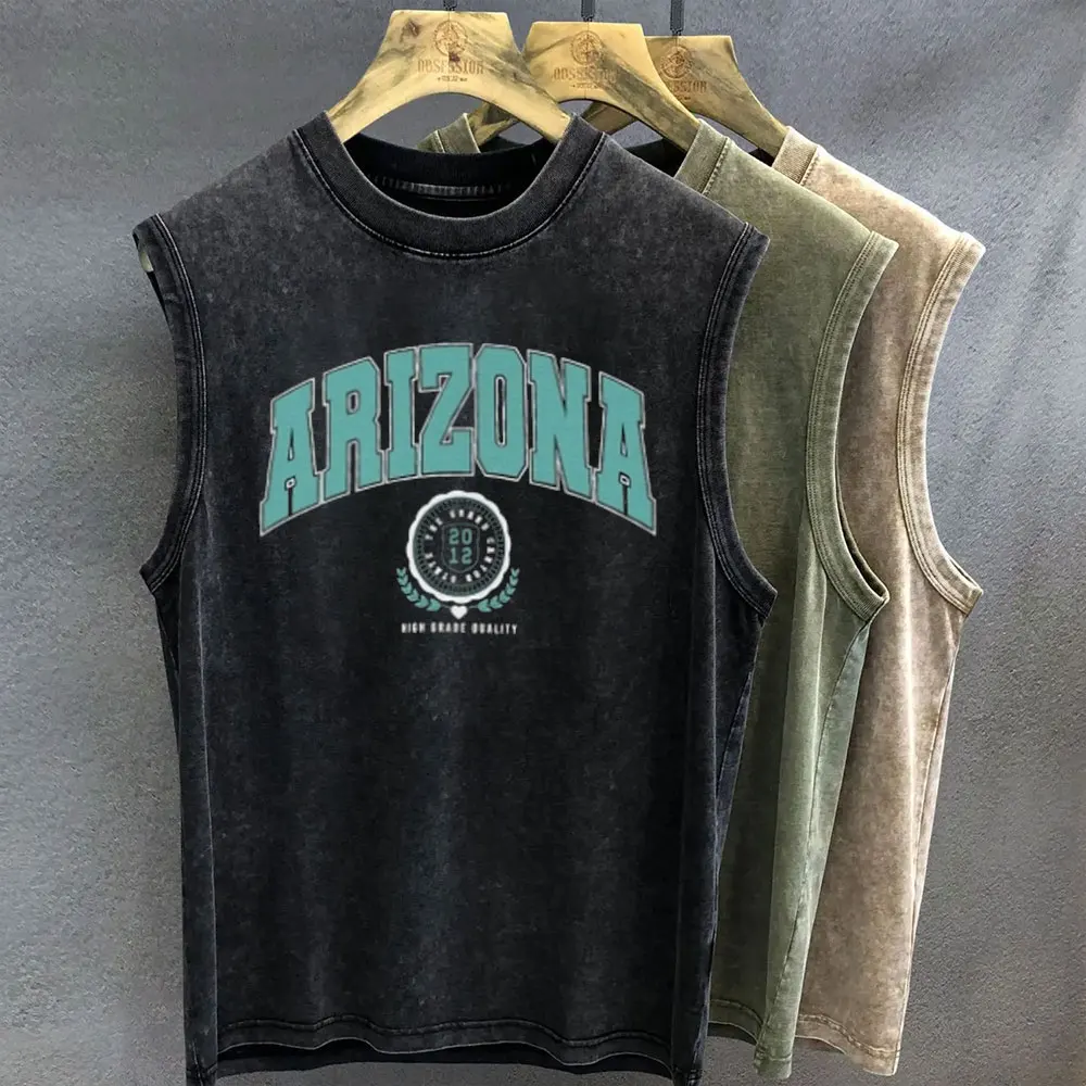 المتضخم تي شيرت للرجال خمر غسل البرازيلي الجرافيك طباعة تانك الأعلى سترة دون أكمام امرأة الصالة الرياضية ملابس الشارع الشهير الصيف