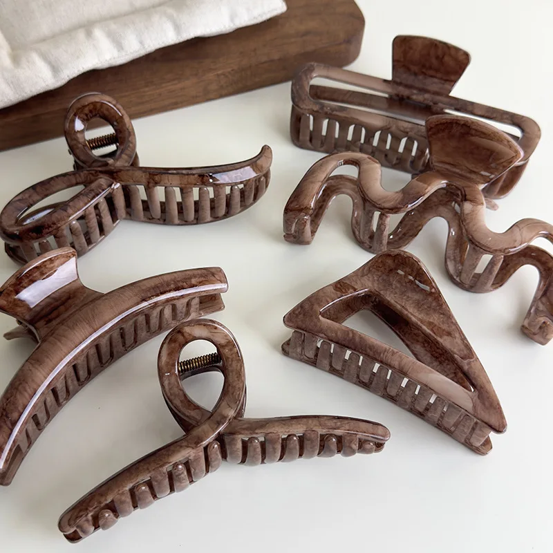 الرجعية براون رخامي مخلب شعر كبير الهندسة المشابك النسائية مزاجه دبابيس الشعر القرش مقاطع الإناث موضة إكسسوارات الشعر