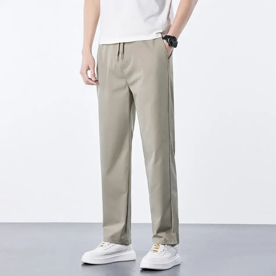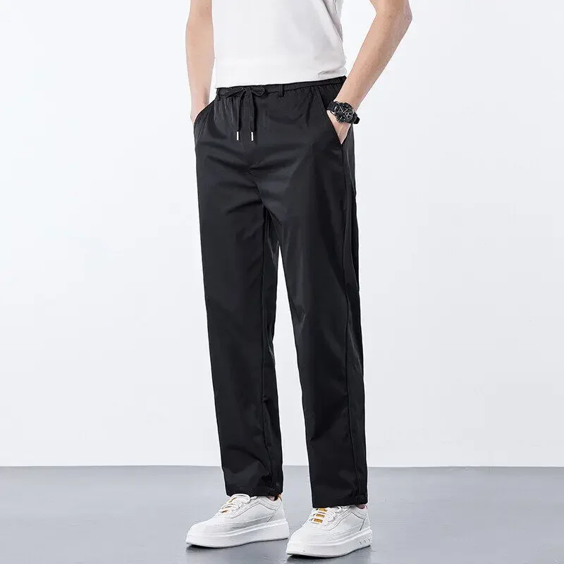 الرجال الصيف رقيقة الحرير الجليد سراويل تقليدية رياضي عصري مستقيم الساق السراويل الطويلة الكورية نمط كبير الحجم مريحة الترفيه Trous