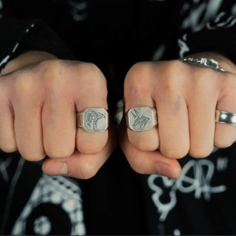 الرجال حلقة مفتوحة آلهة مصر عيون حورس الباردة نمط الرجعية قابل للتعديل مصقول الصلبة الرجال نادي الحفلات مجوهرات فنجر فنغ المفصل