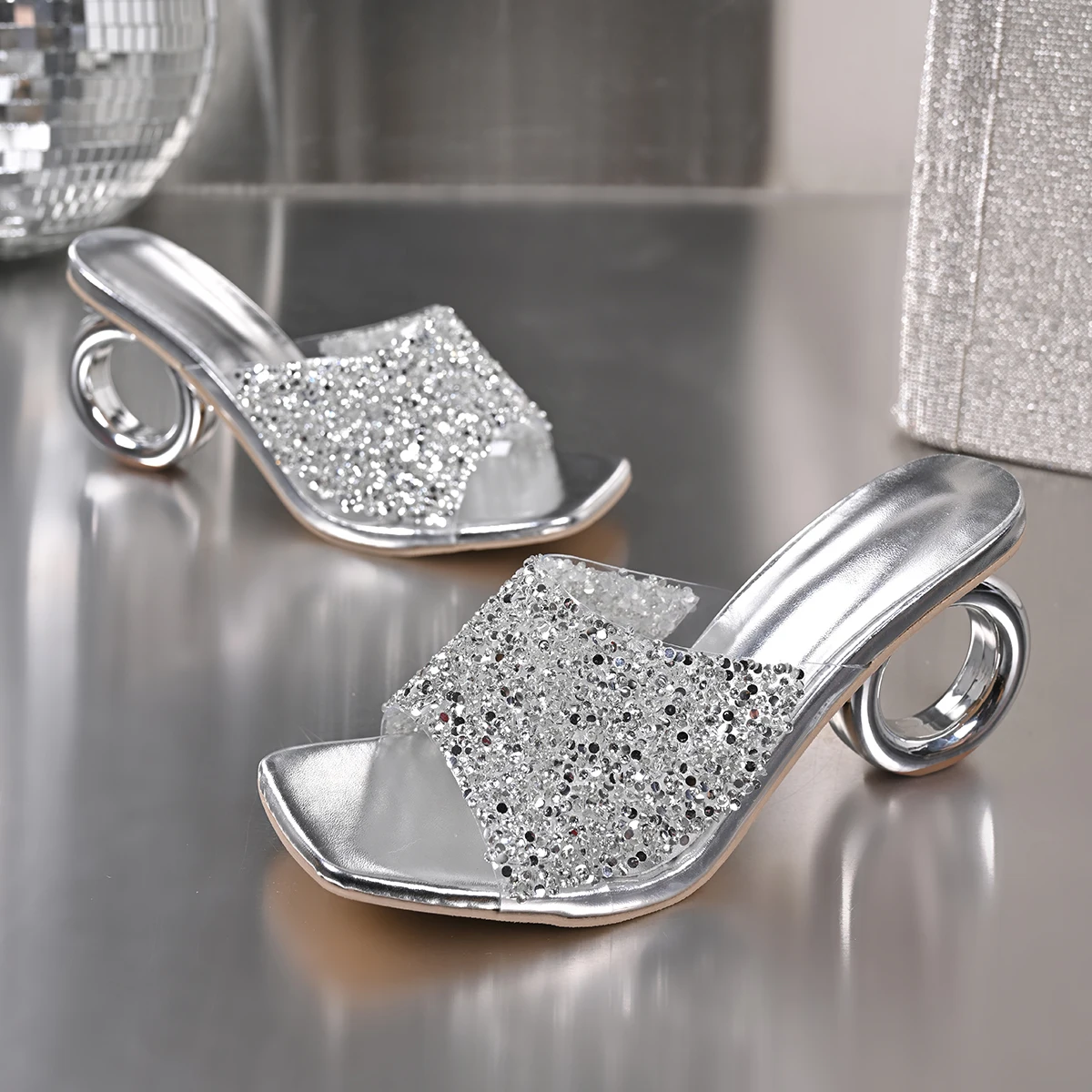 أنيقة أشار تو عالية الكعب النعال النساء الصيف موضة واضح كريستال كعب الصنادل امرأة لامعة الترتر مأدبة أحذية الحفلات
