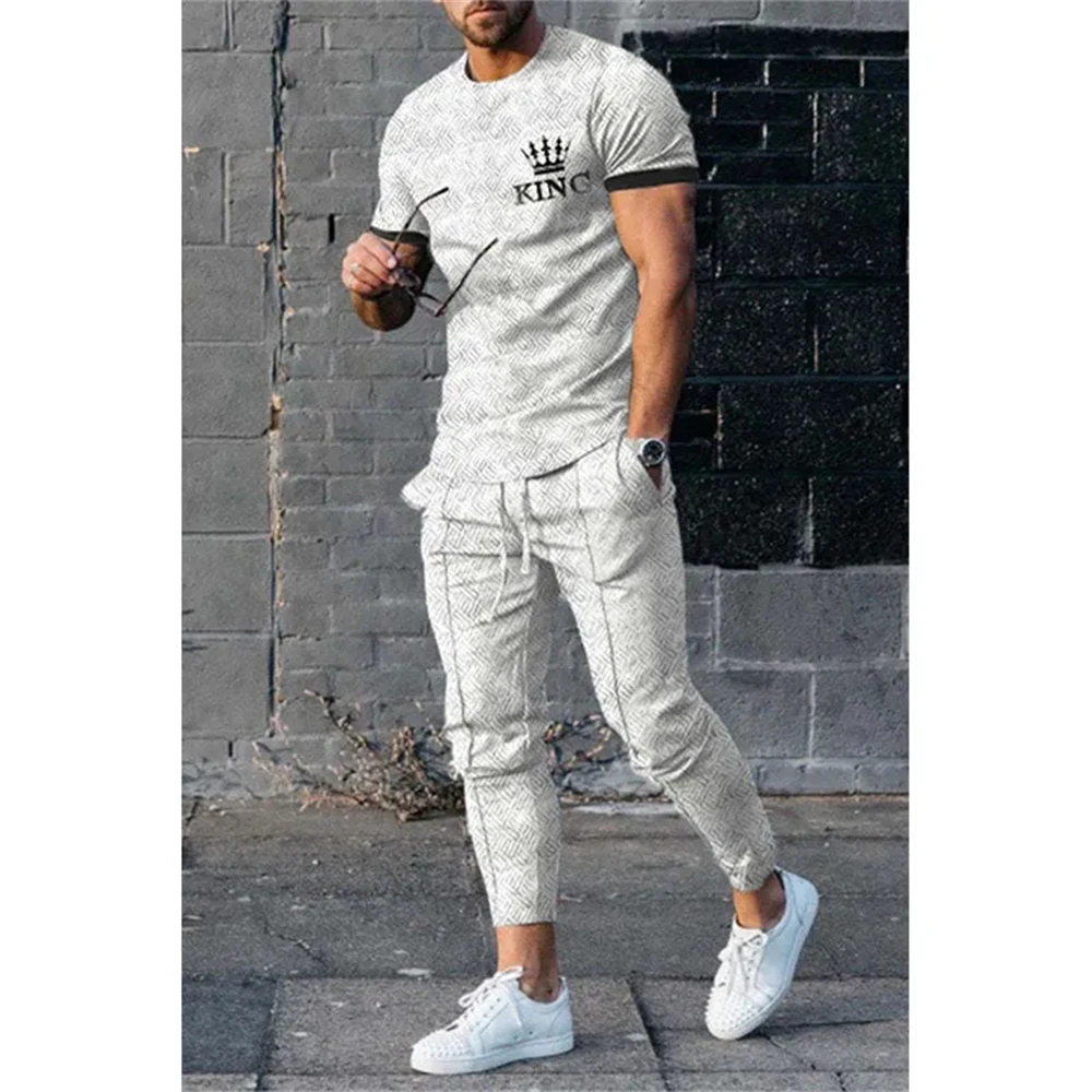 أزياء الرجال السراويل رياضية 2 قطعة مجموعة 3D طباعة الربيع الصيف رياضي نمط قصير الأكمام تي شيرت + السراويل الطويلة ملابس للرجال