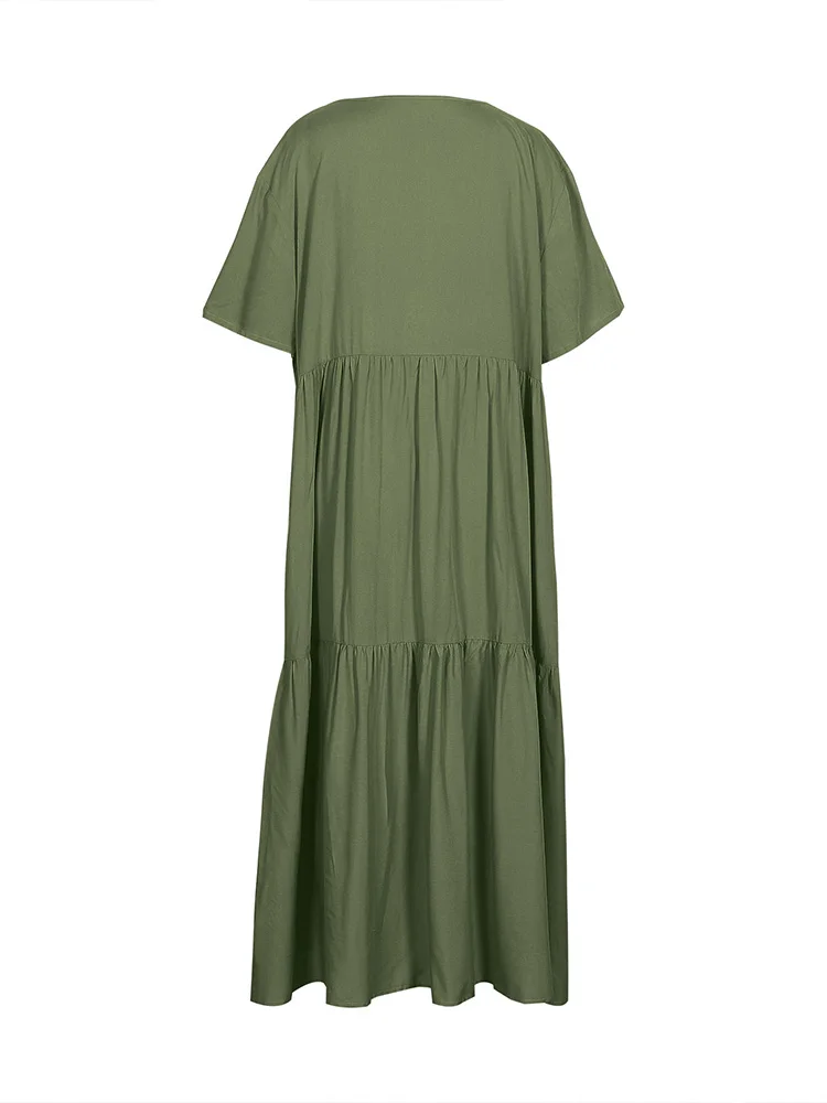 بالإضافة إلى حجم المرأة عارضة فضفاض الخامس الرقبة الصلبة فستان طويل الربيع الصيف مطوي فستان المرأة حجم كبير