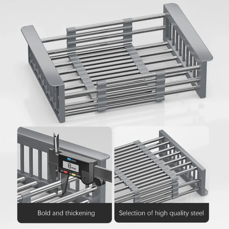 بالوعة المطبخ تلسكوبي استنزاف الرف أطباق الفولاذ المقاوم للصدأ أطباق أدوات المائدة استنزاف سلة الفاكهة والخضروات تخزين الرف