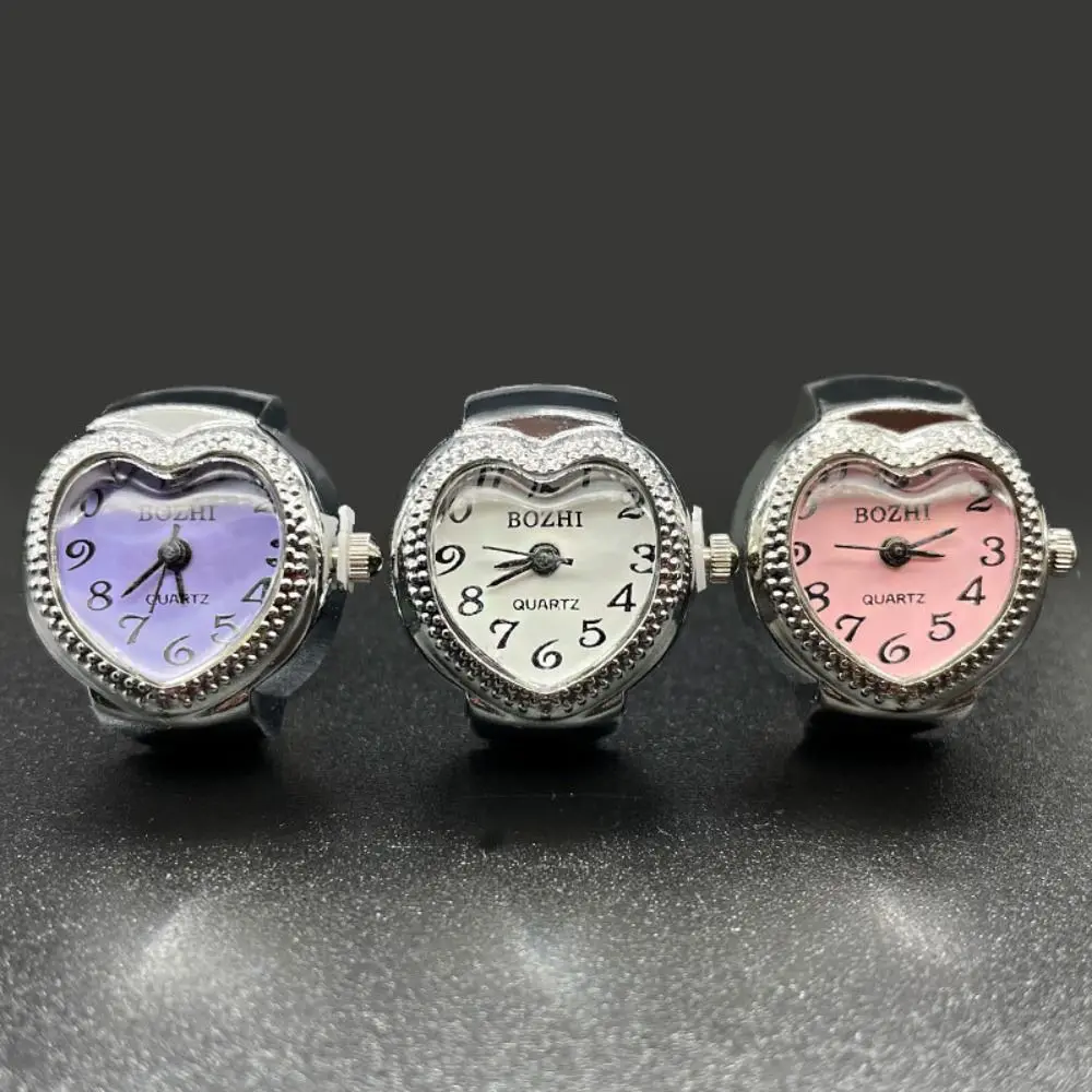 بارد خمر خواتم مجوهرات ساعة شكل قلب الشرير الروماني كوارتز ساعة قابل للتعديل البسيطة مطاطا حزام الاصبع ووتش حلقة زوجين