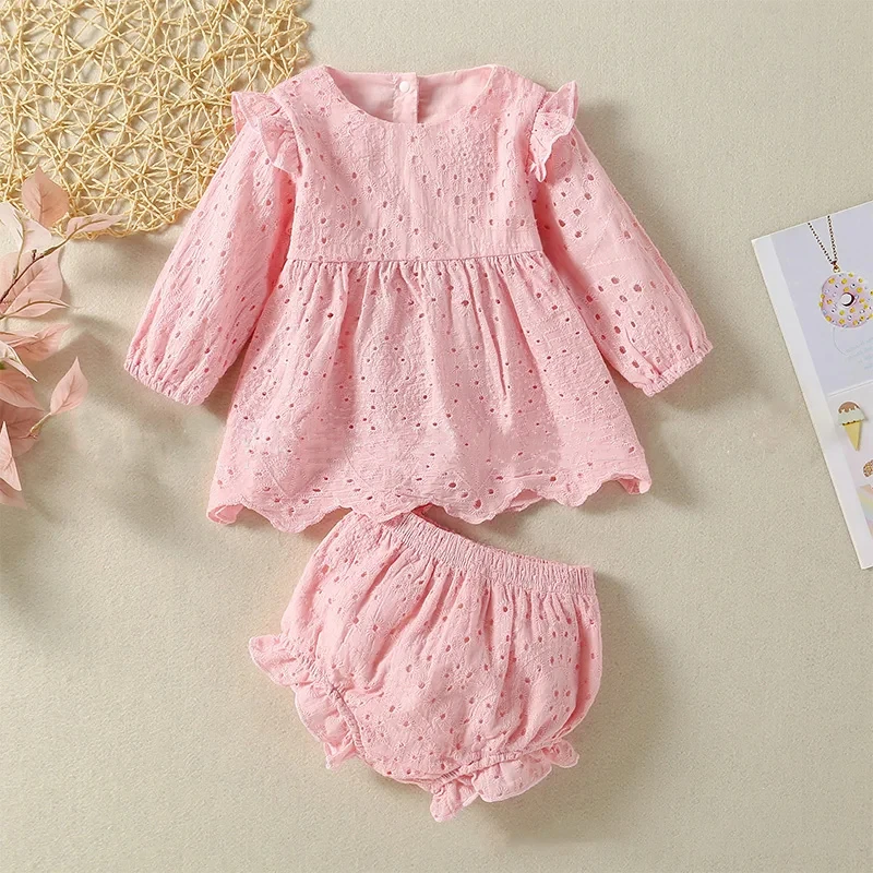 بدلة من قطعتين بأكمام طويلة للبنات ، تنورة قصيرة ، أعمال فنية ، تصميم خارجي ، لون سادة ، ملابس للربيع والخريف ، موضة غير رسمية