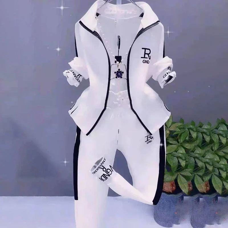 بدلة رياضية نسائية 2025 خريف شتاء جديد موضة غير رسمية الكورية معطف نحيف كم طويل سترة السراويل قطعتين مجموعة للنساء