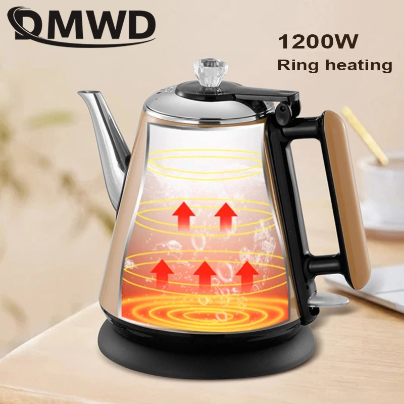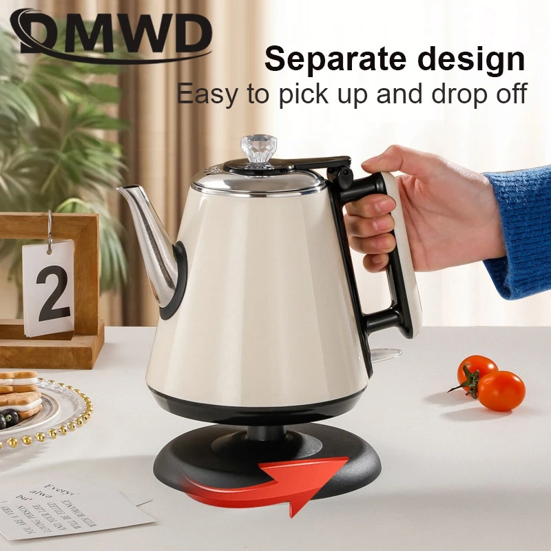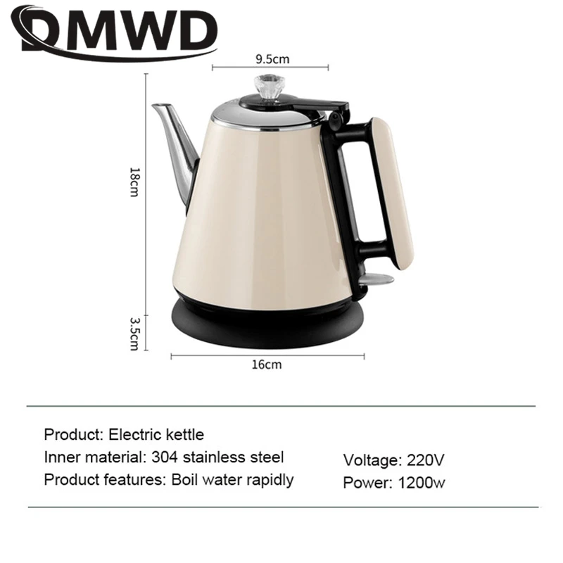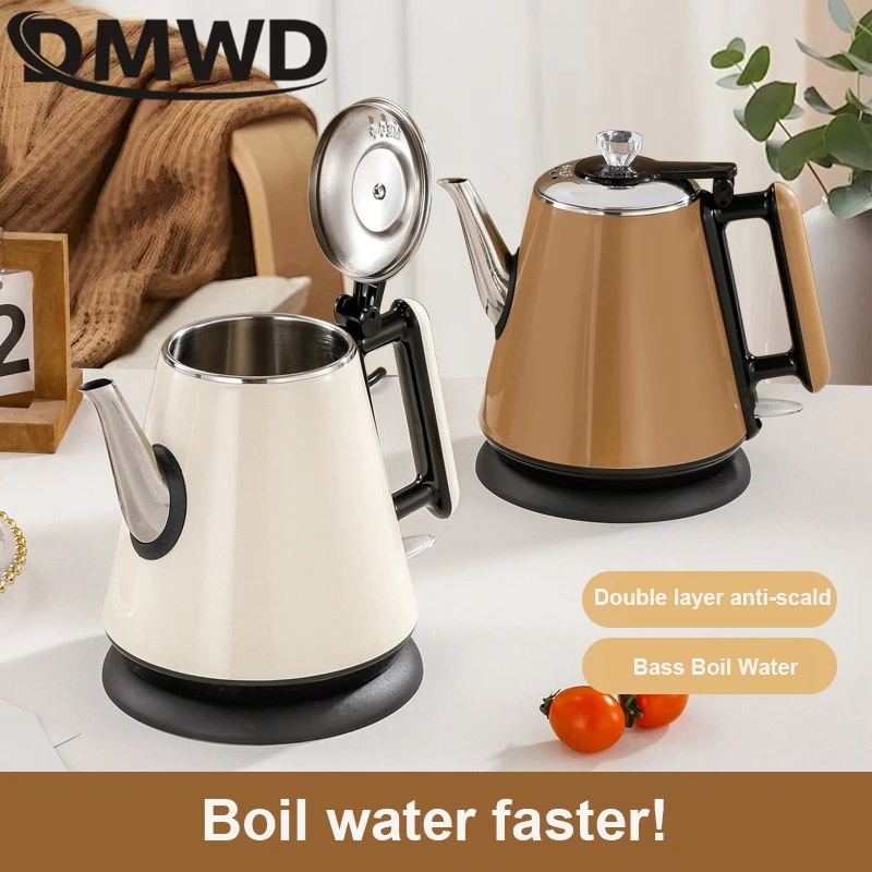 DMWD 1.2L غلاية كهربائية صغيرة سخان مياه محمول إبريق الشاي القهوة دفئا مكافحة تحرق غلاية من الفولاذ المقاوم للصدأ إيقاف التشغيل التلقائي