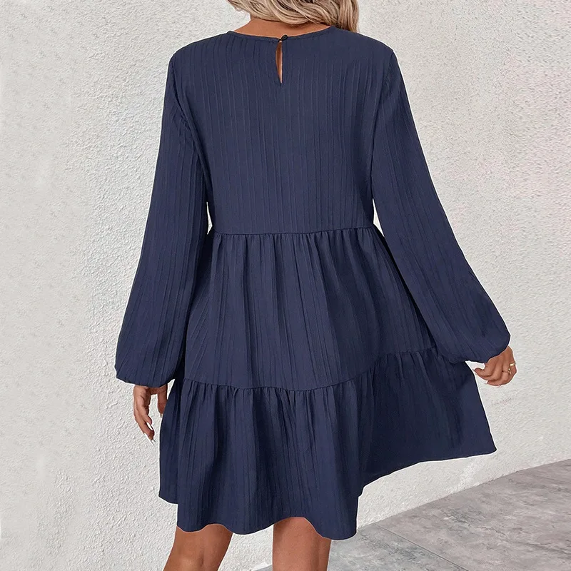 فستان فضفاض جديد بسيط وعصري بأكمام طويلة ورقبة مستديرة نقية