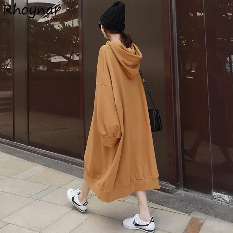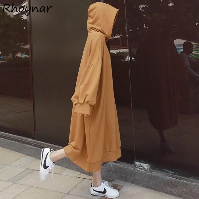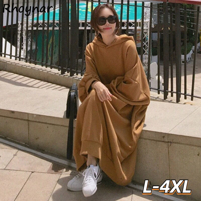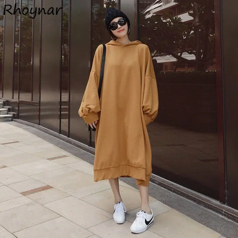 فستان نسائي بقلنسوة بسيط سادة فضفاض للخريف للفتيات Preppy كاجوال فضفاض بأكمام طويلة ملابس للحوامل على الطراز الكوري Ins