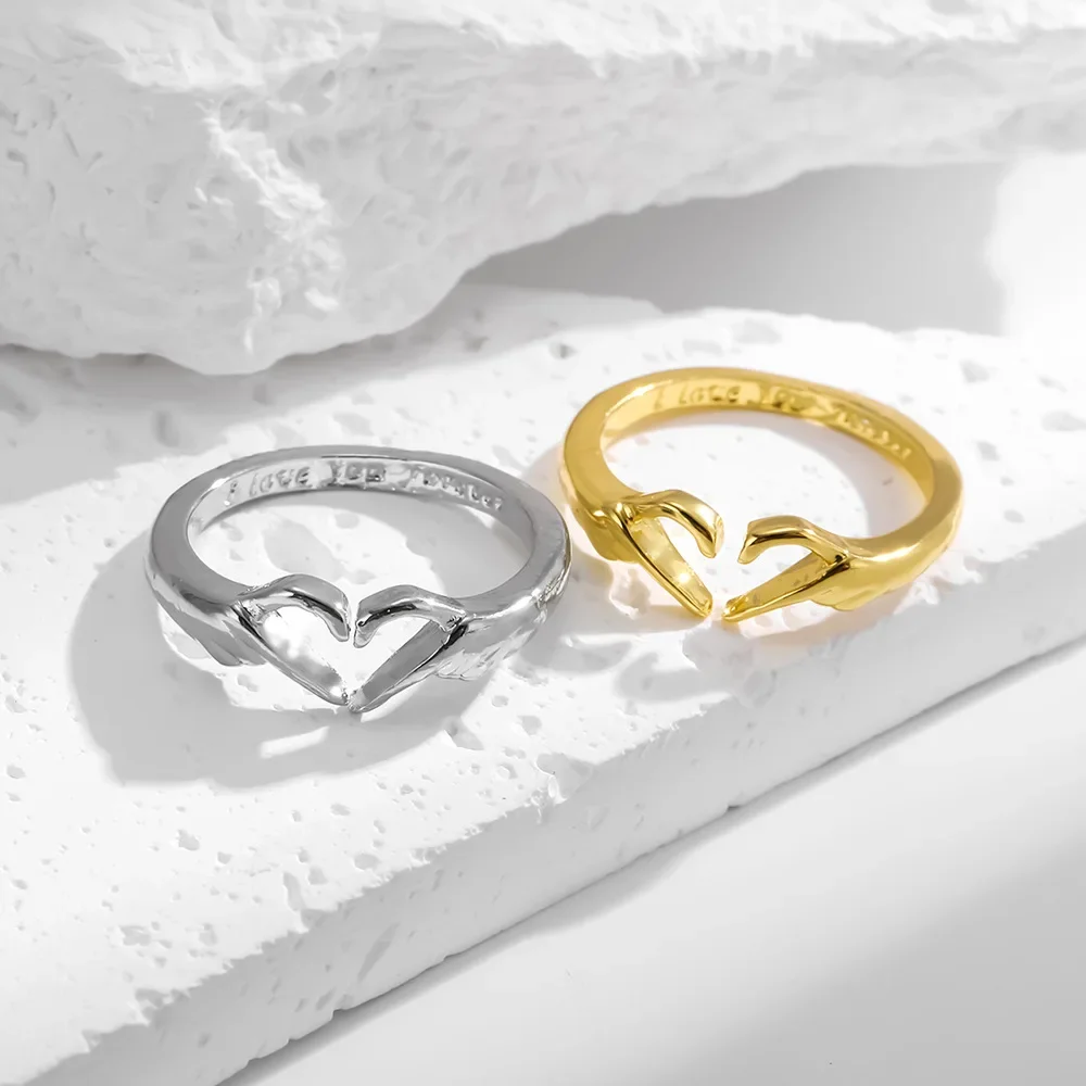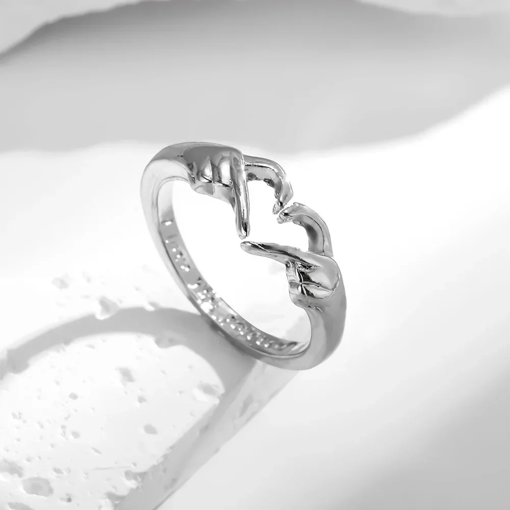 جديد على شكل قلب خاتم هدية المرأة مفتوحة قابل للتعديل تصميم بسيط مزدوج اليد القلب خاتم اكسسوارات من البر الرئيسى للصين