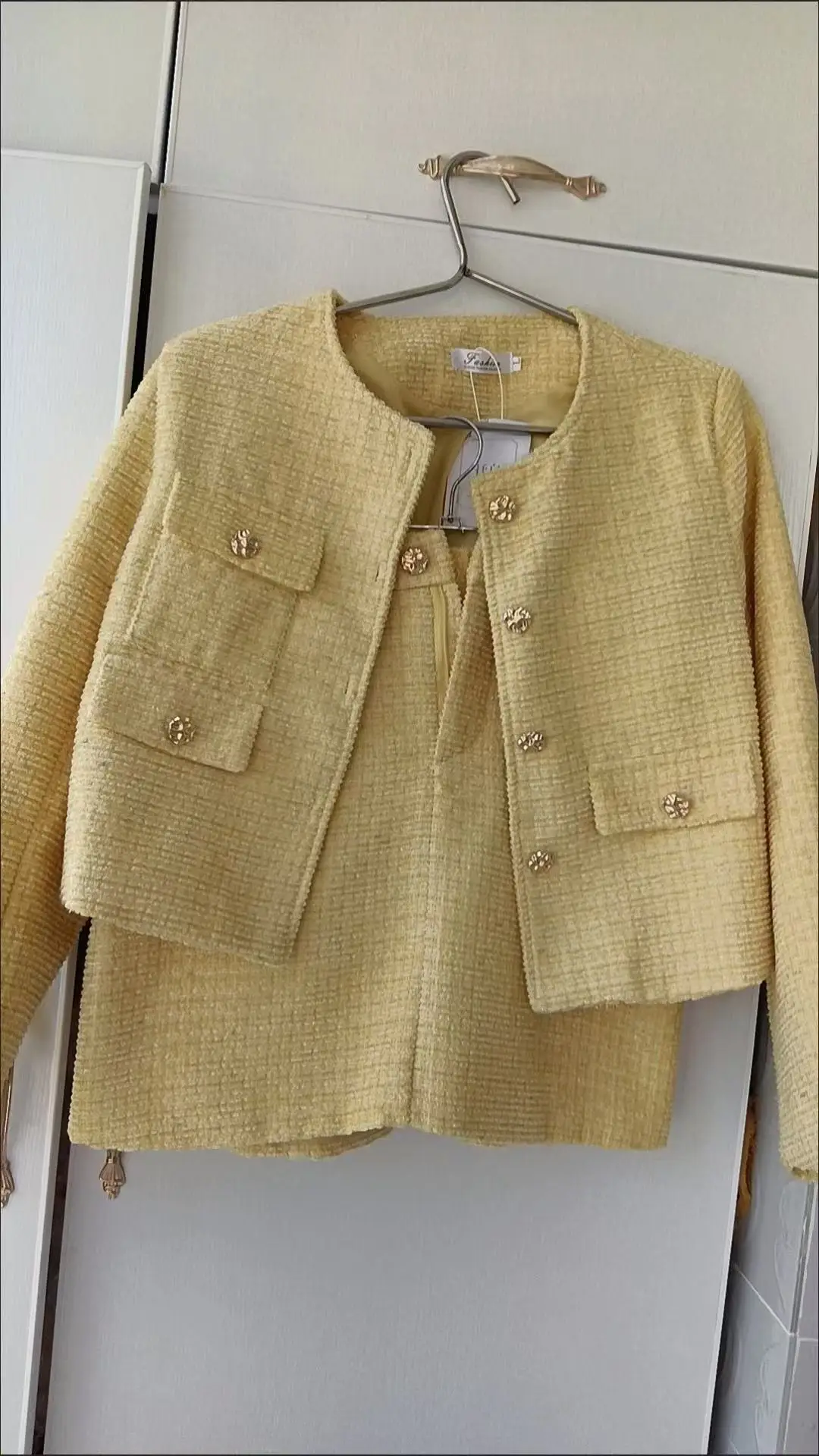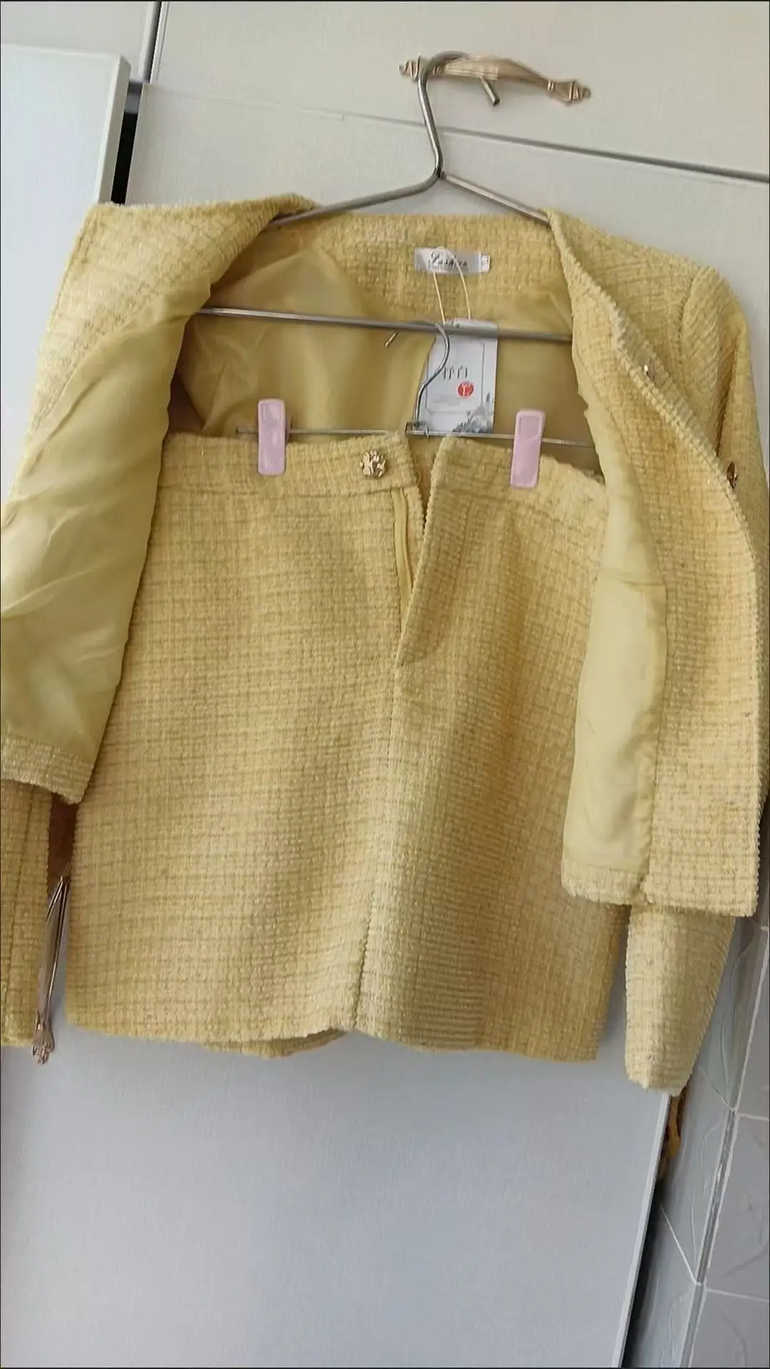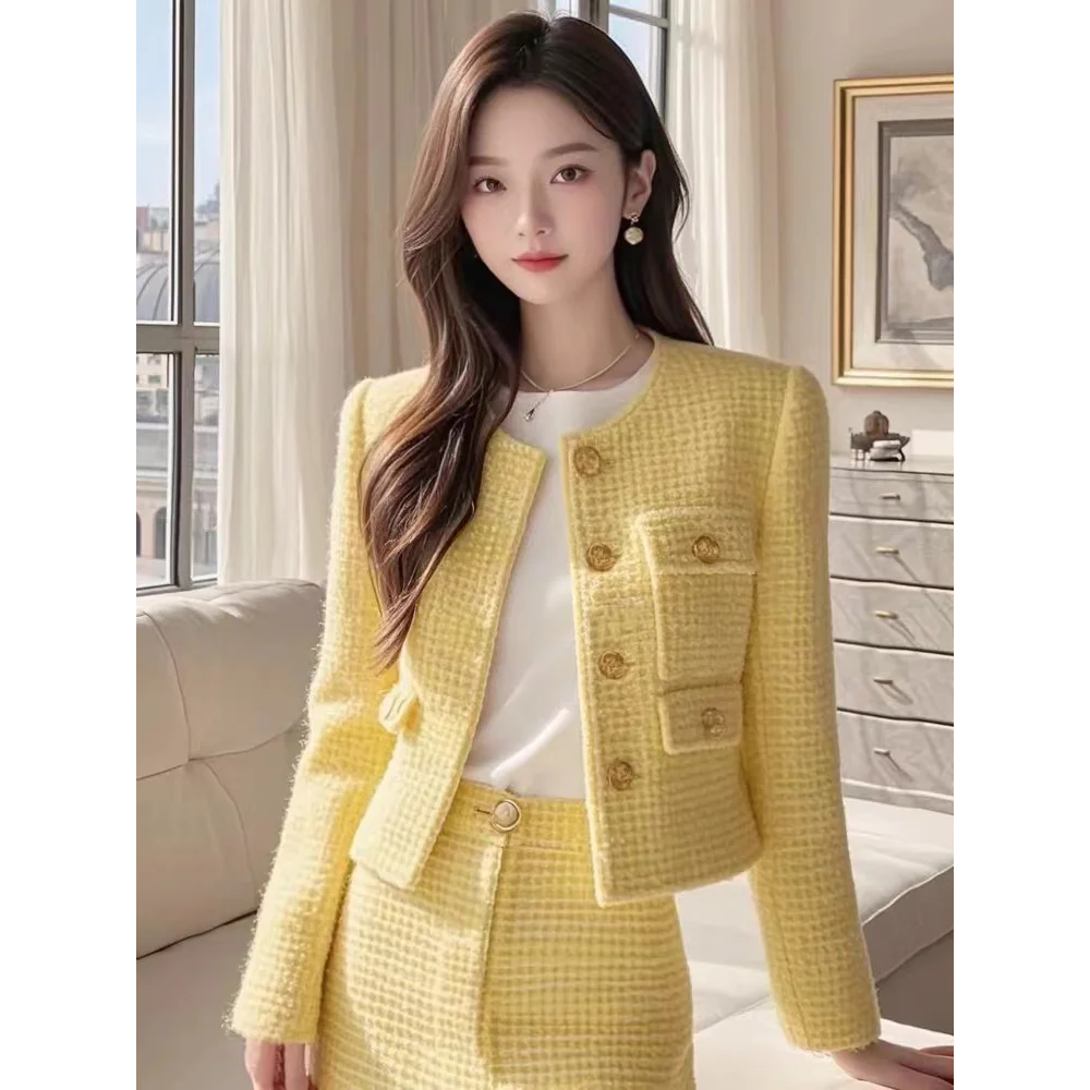 جديد الخريف الشتاء تويد المرأة قطعتين مجموعة الراقية أنيقة طويلة الأكمام سترة ضئيلة تنورة صغيرة صغيرة عبق بدلة على الموضة